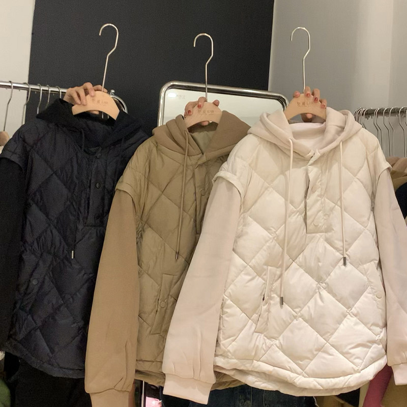 Демисезонный пуховик, куртка с ромбовидным узором с капюшоном, в корейском стиле