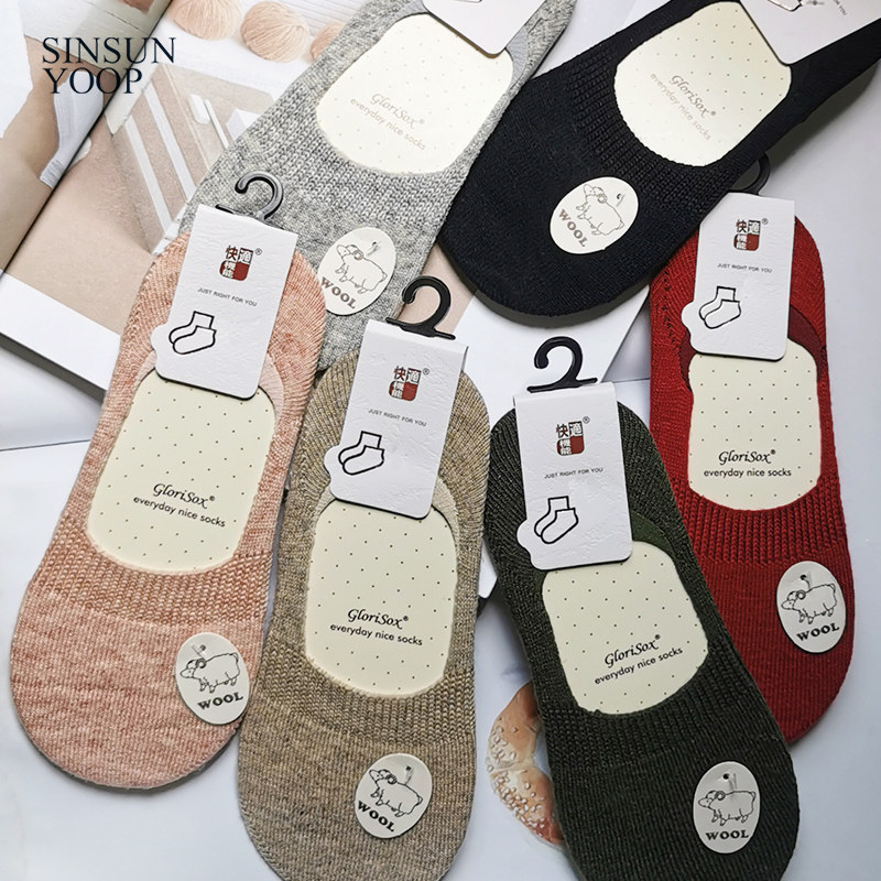 Женские шерстяные носки-лодочки, кашемировые теплые невидимые носки, зимние нескользящие силиконовые суперкороткие носки, утолщенные теплые носки-лодочки с мелким горлышком
