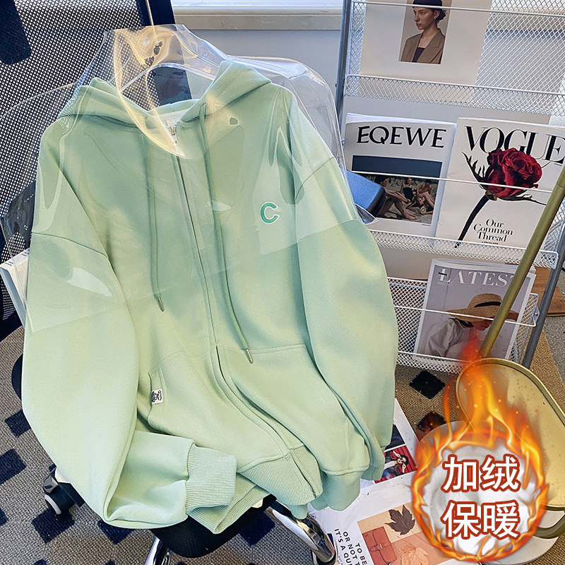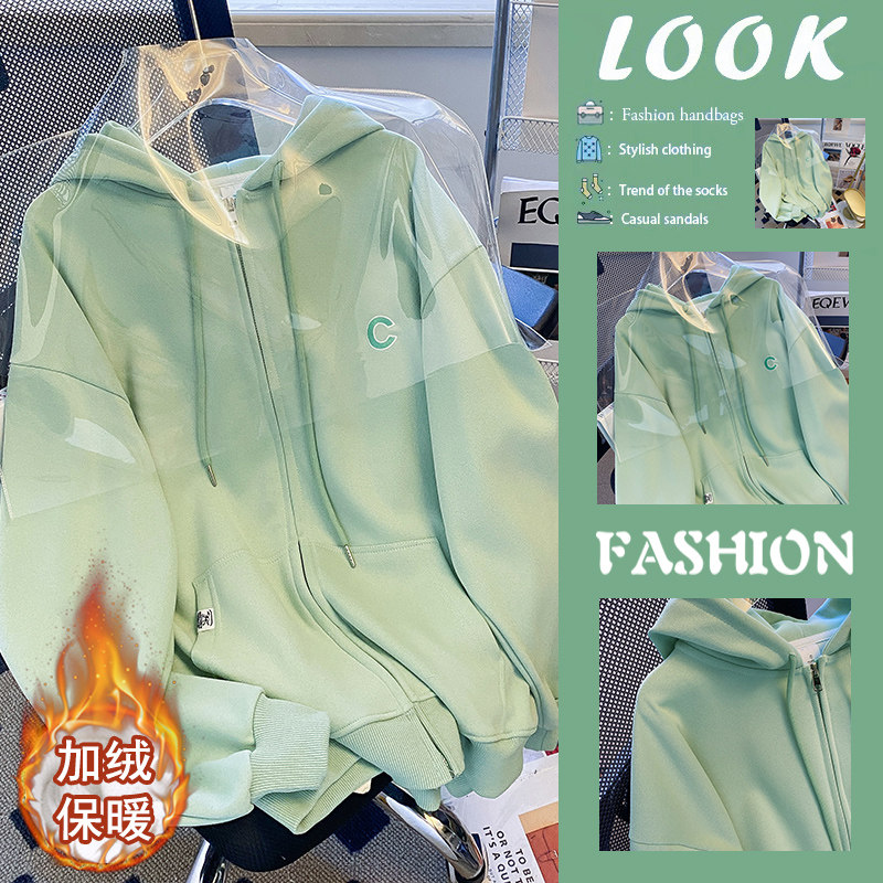 (Трансграничная торговля), брендовая зеленая утепленная толстовка, толстовка с капюшоном, кардиган, большой размер