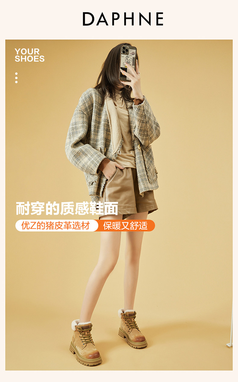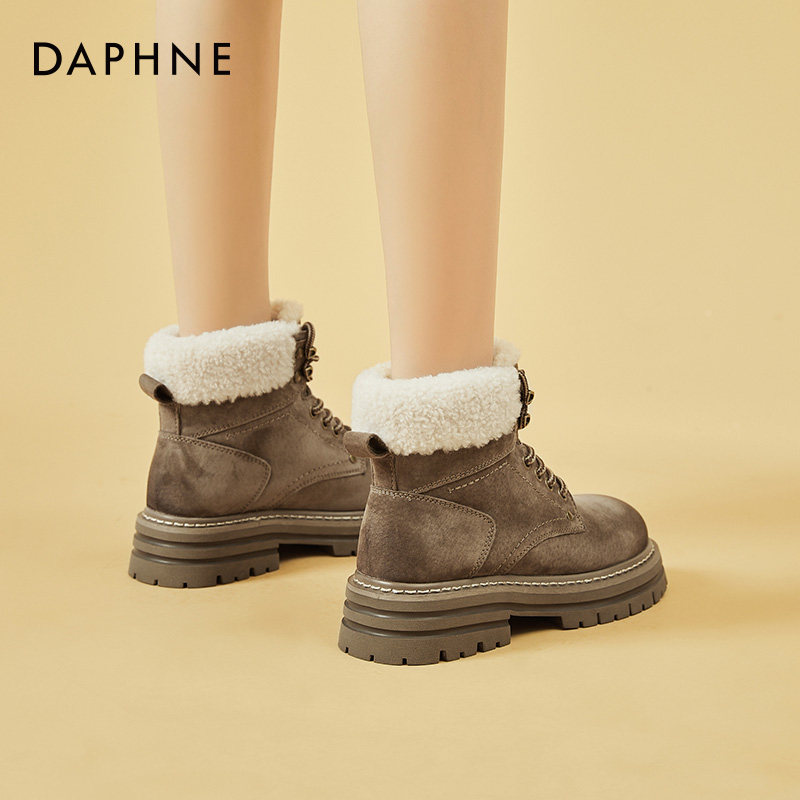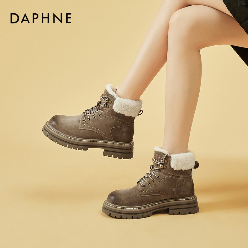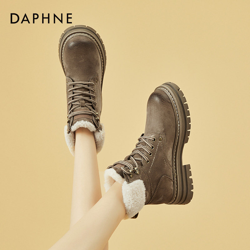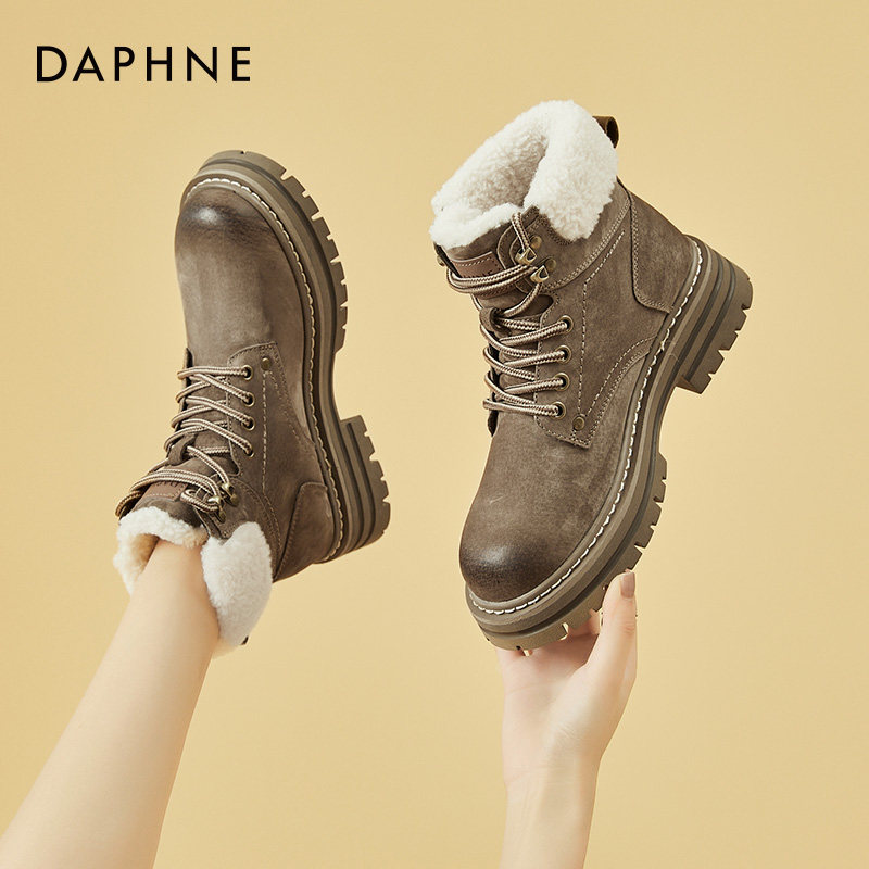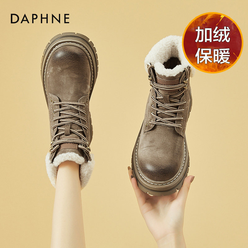 Daphne/达芙妮 Женские ботинки martin на толстой подошве, бархатные осенние и зимние северо-восточные зимние ботинки в стиле ретро, утолщенные морозостойкие хлопковые туфли.