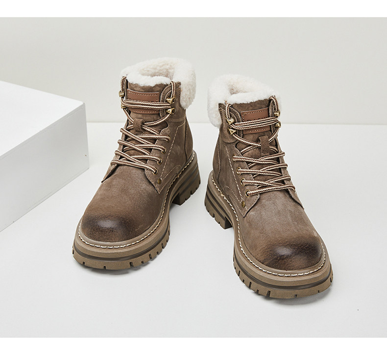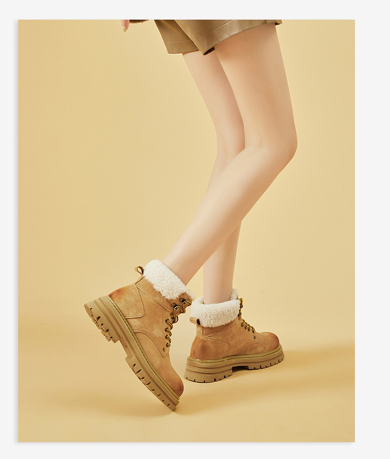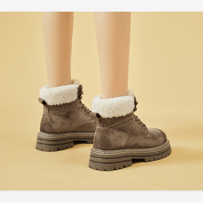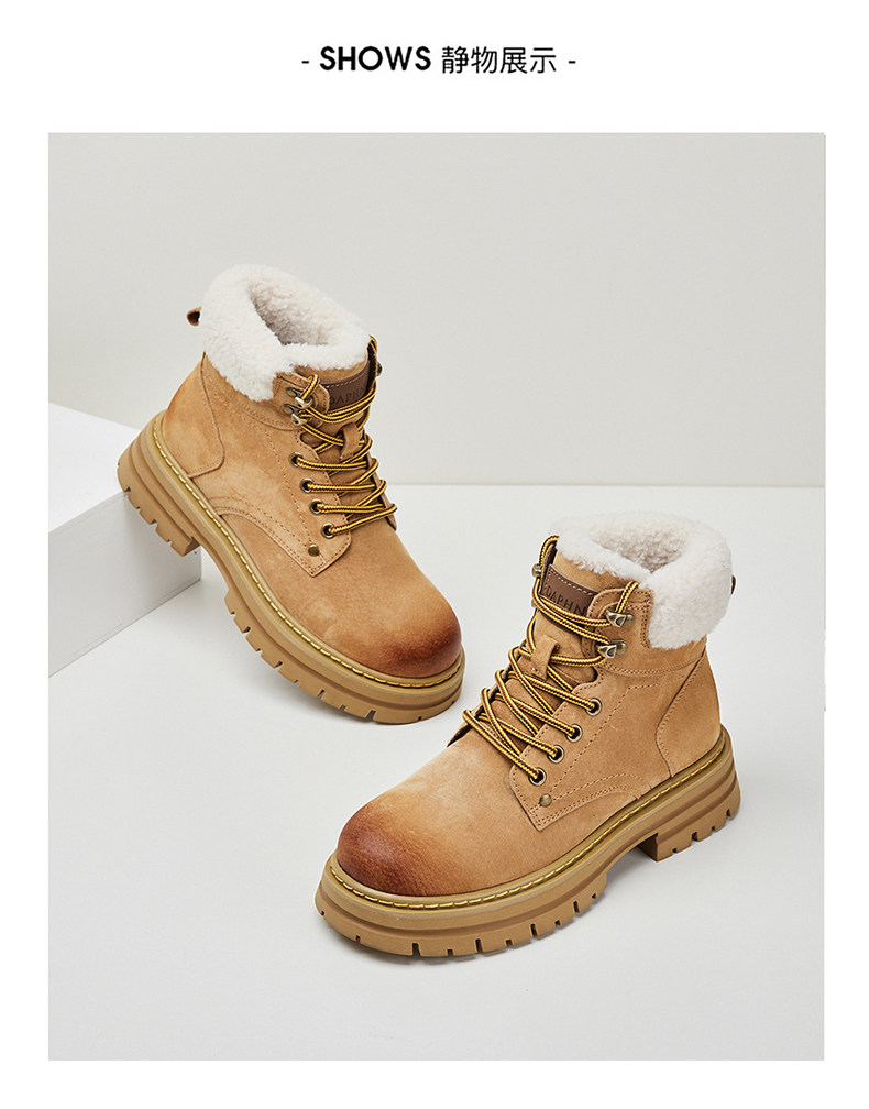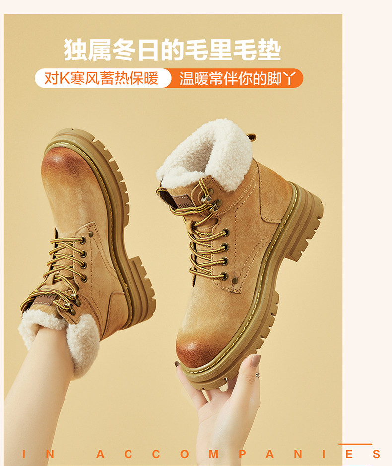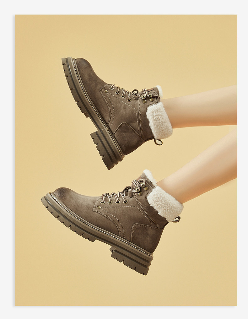 Daphne/达芙妮 Женские ботинки martin на толстой подошве, бархатные осенние и зимние северо-восточные зимние ботинки в стиле ретро, утолщенные морозостойкие хлопковые туфли.