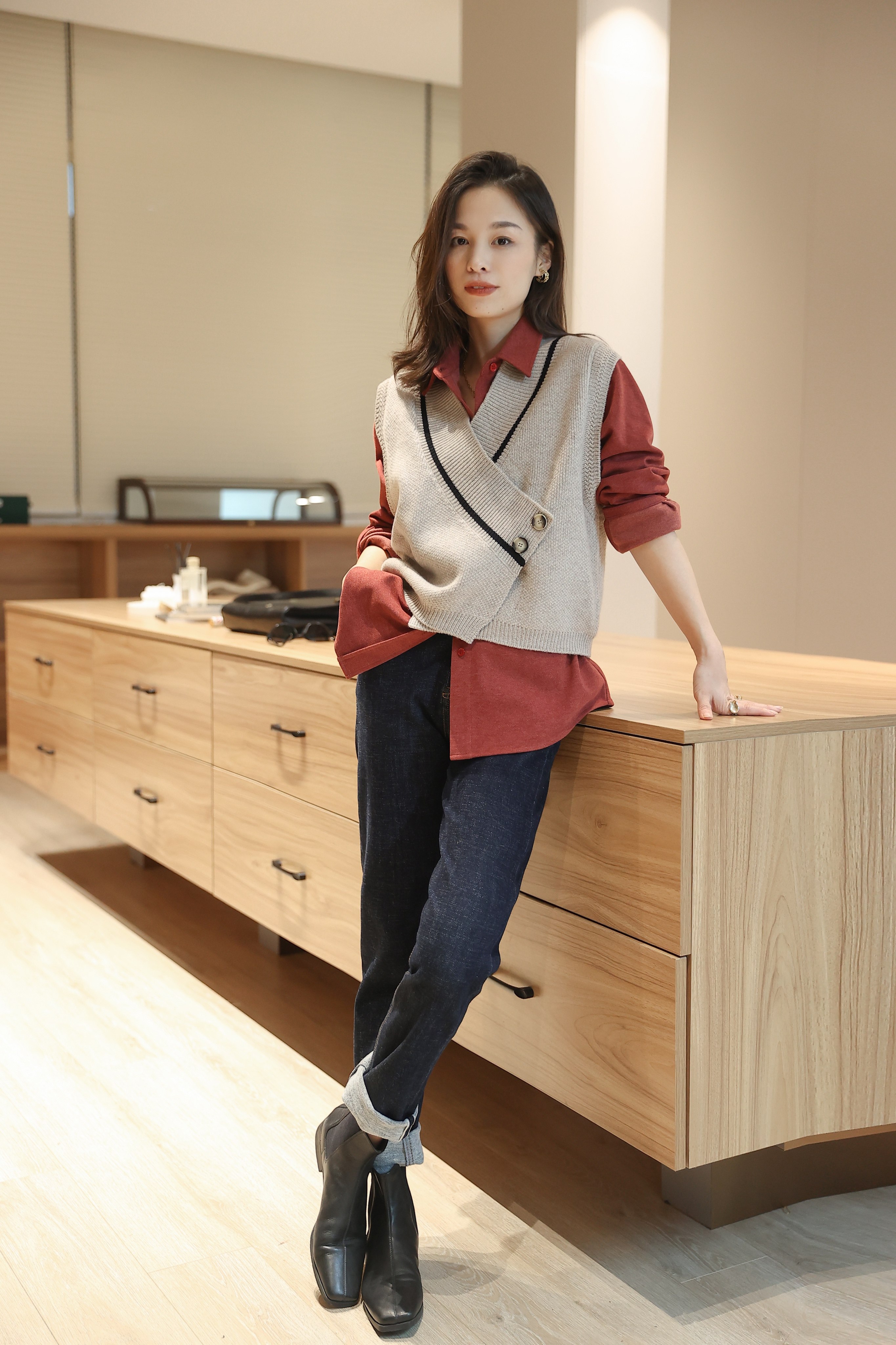 | После повторных корректировок на вырез показывается глубокий v -neck, вызванный Цзином, и есть небольшое чувство чувства лица. Овергательство рта манжеты прямо, верхняя часть тела подается, а линии рук показывают темперамент Манжеты и дизайн мусора в подол После контрастности Smart не является монотонным, показывая тонкий трехмерный слоистый смысл |