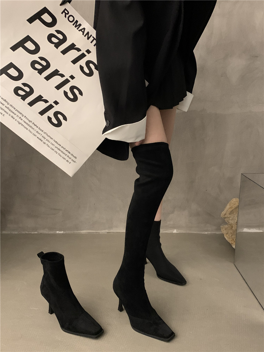 Ботильоны на высоком каблуке, эластичные короткие сапоги, весенние зимние туфли-шпильки, изысканный стиль, французский стиль, 2023