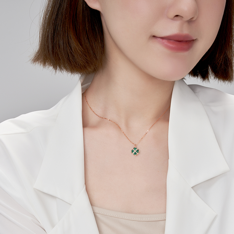 Acer, ониксовая подвеска малахит, цепочка, четырехлистный клевер, золото 750 пробы