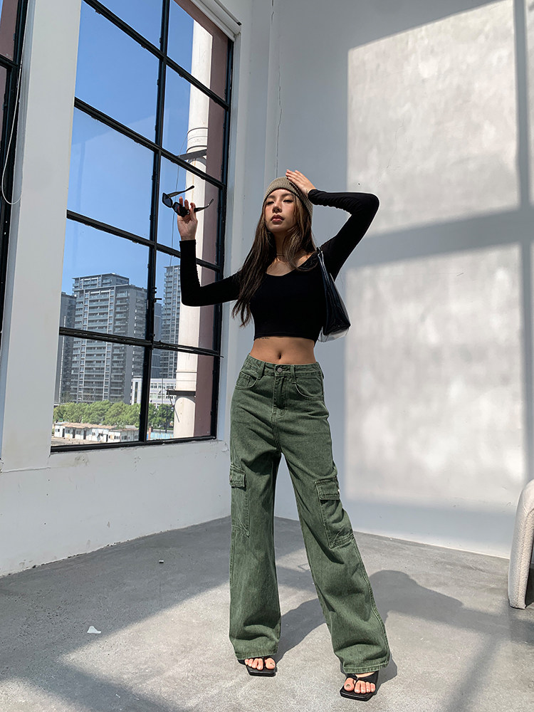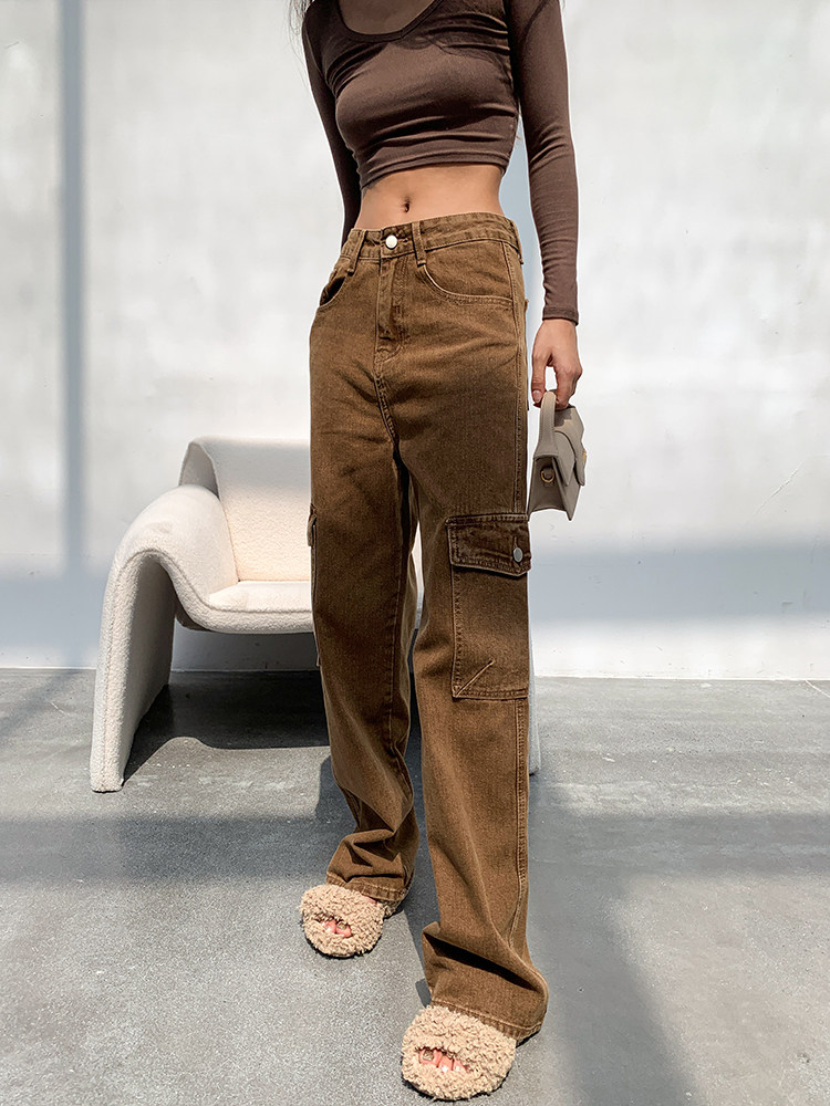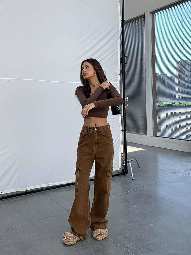 Демисезонные сексуальные прямые свободные джинсы, в американском стиле, коллекция 2023, высокая талия, свободный прямой крой, 2 цветов
