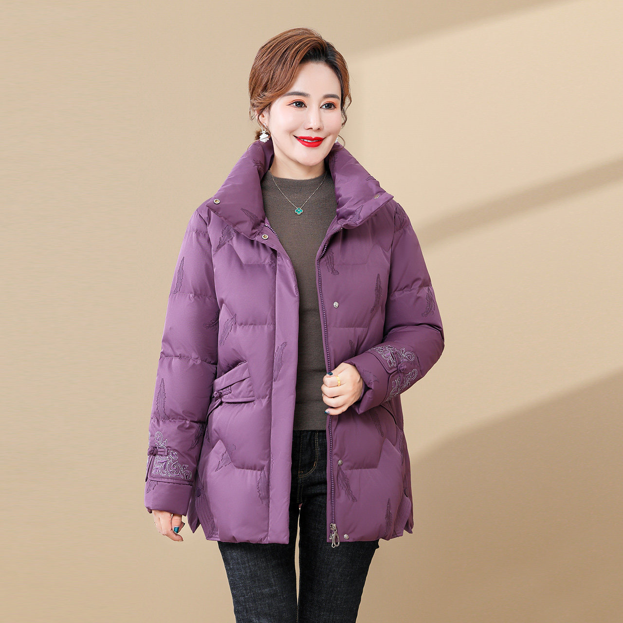 Демисезонный пуховик для матери, для среднего возраста
