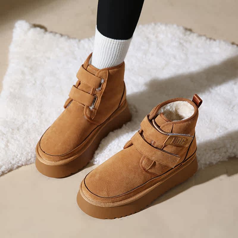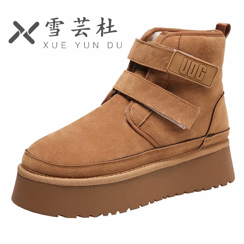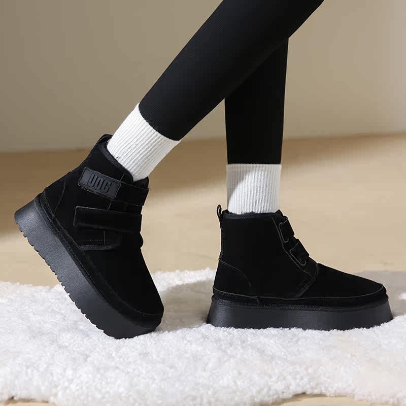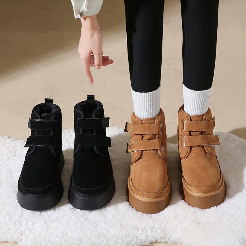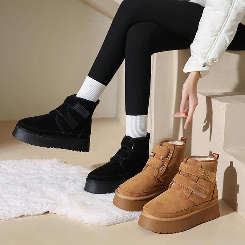 Снежные ботинки Женское толстое дно носит шерстяные туфли с волосами 22 Зимние новые мех интегрированные круглые головы.