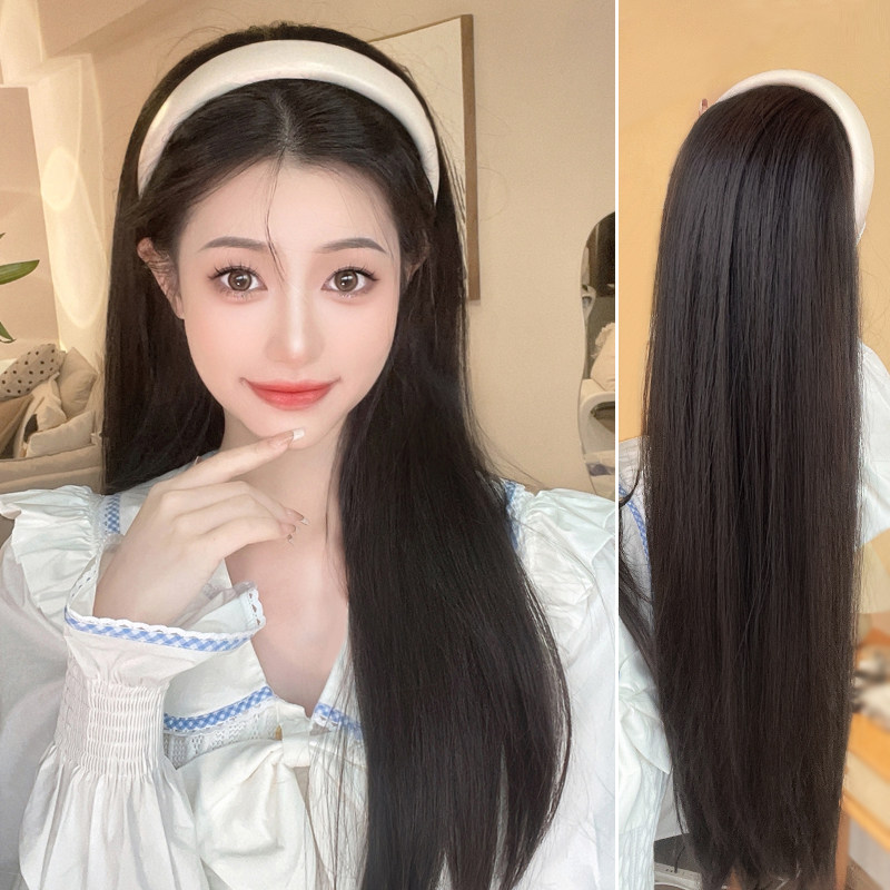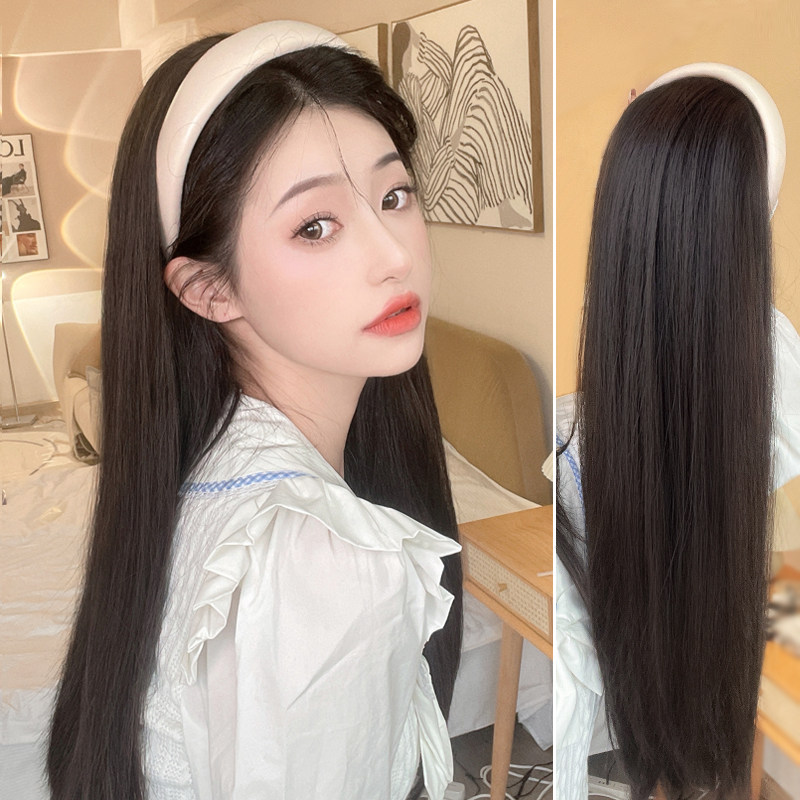 Парик, ободок, шлем изготовленный из настоящих волос на макушку, прямые волосы