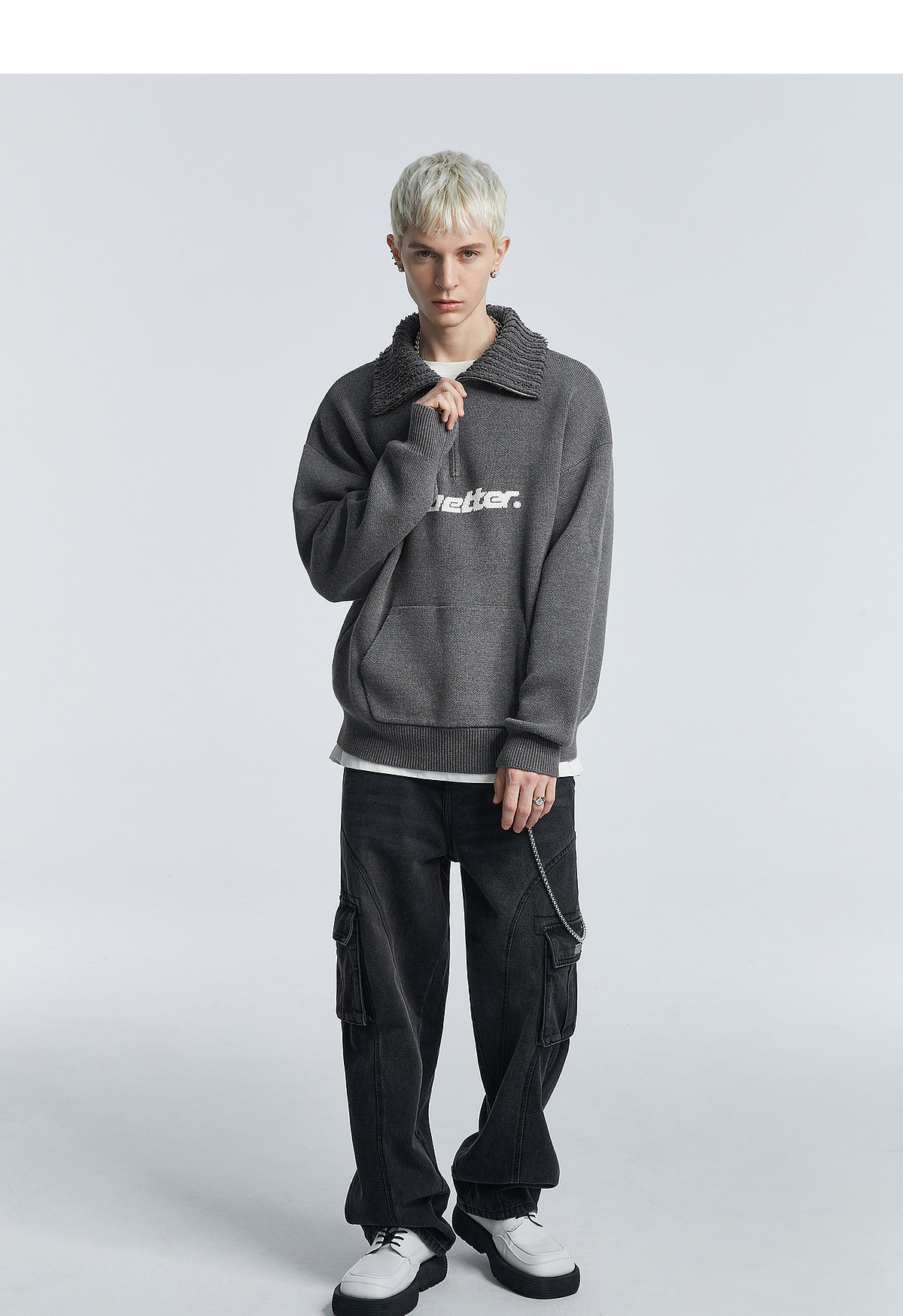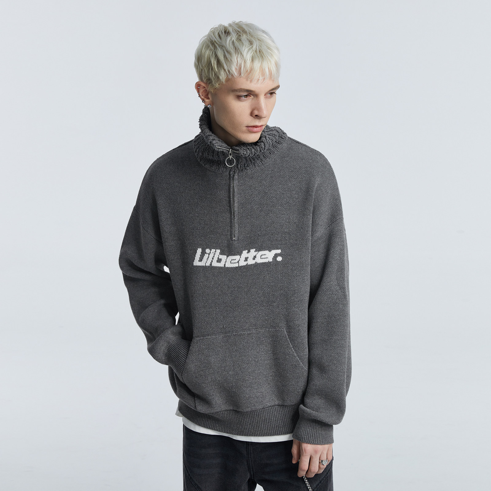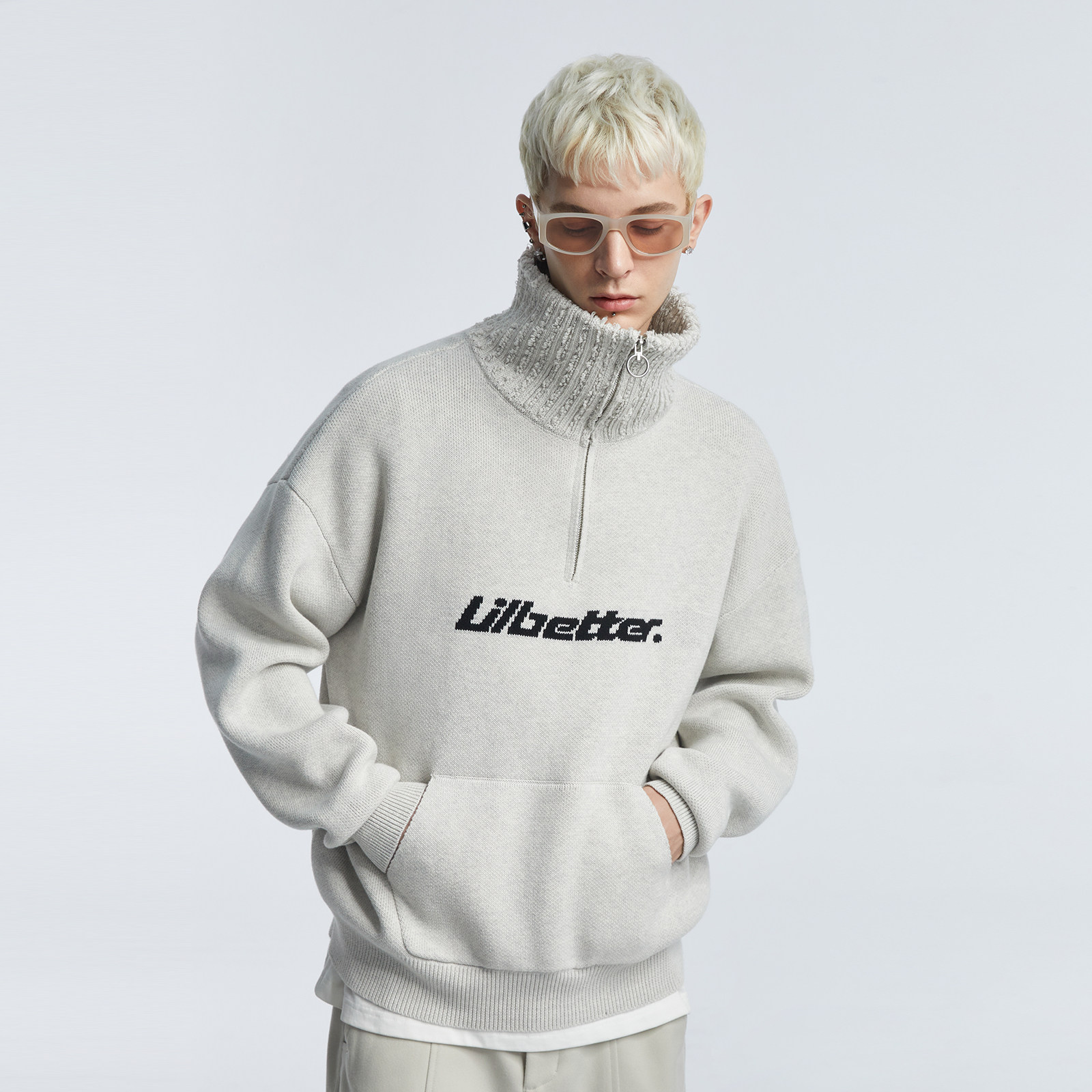 Трикотажный демисезонный свитер, утепленный лонгслив, шерстяная куртка с молнией, высокий воротник