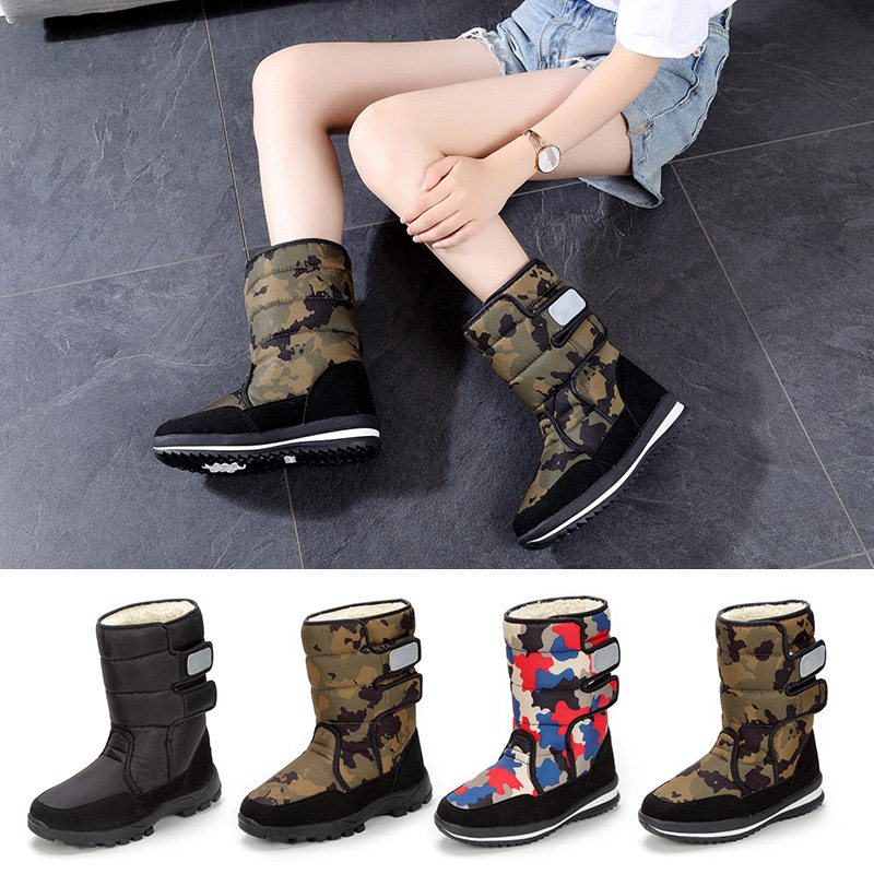 Демисезонные камуфляжные черные нескользящие сапоги, большой размер, средней длины