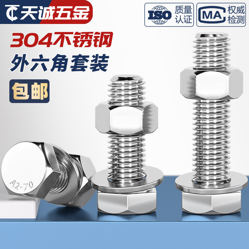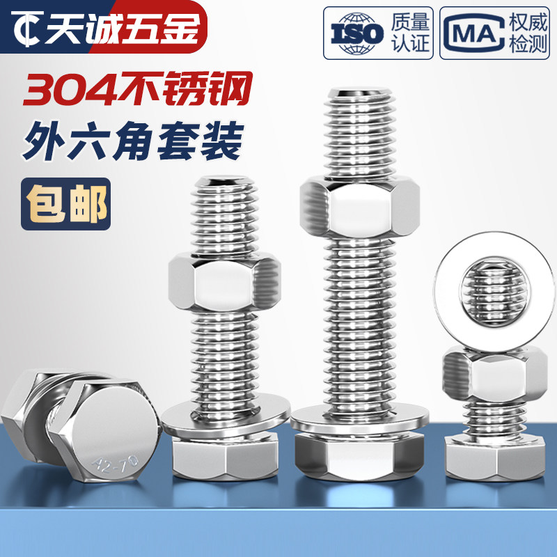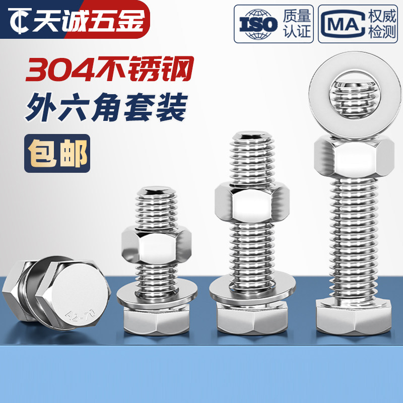 M3-M20 Внешний шестиугольный болт 304 Отечка из нержавеющей стали гайки с плоской набором.