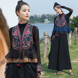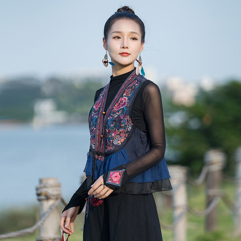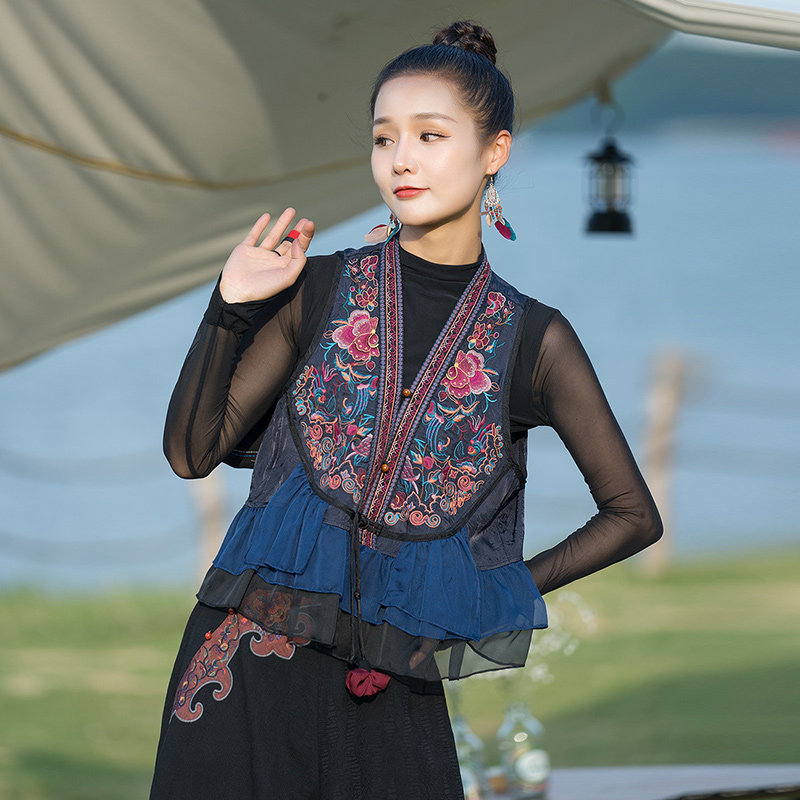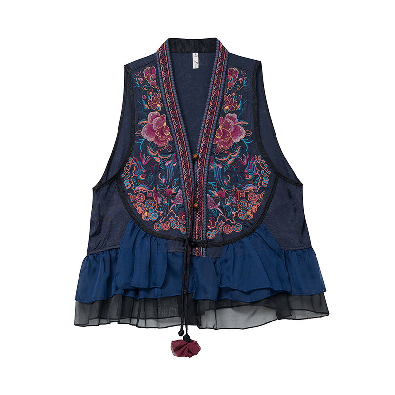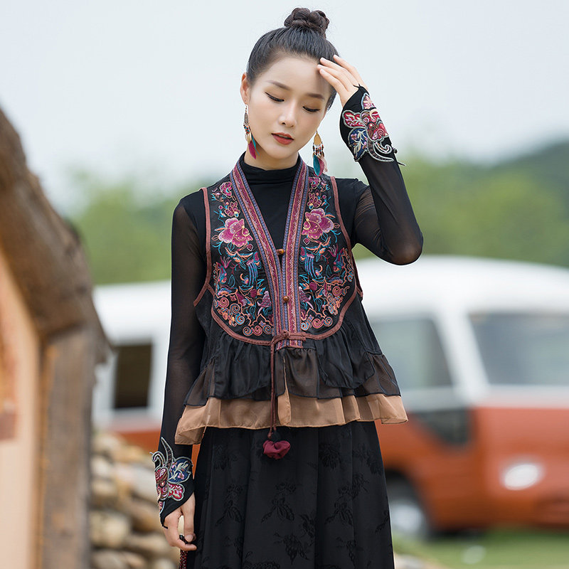 Этнический демисезонный ретро шифоновый жилет, этнический стиль, с вышивкой
