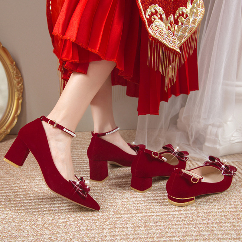 Свадебное платье, свадебные туфли, красная обувь со стразами для невесты на высоком каблуке, против усталых ног, коллекция 2022, китайский стиль