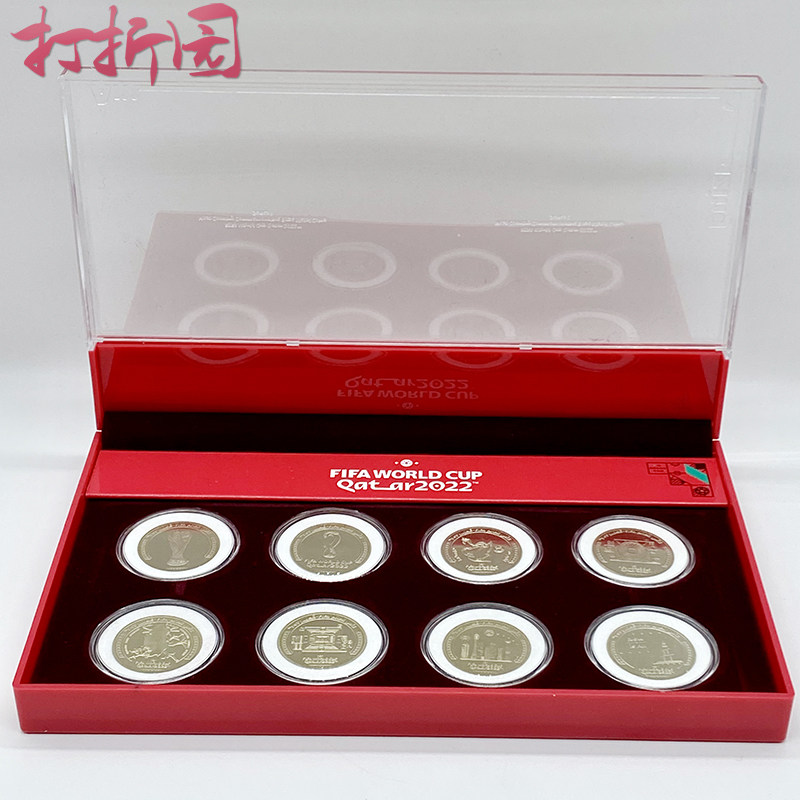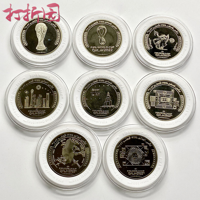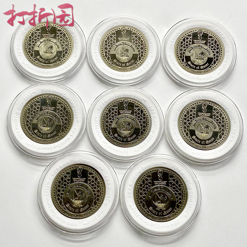 Официальные памятные монеты страны-организатора чемпионата мира по футболу 2022 года в Катаре. Набор из 8 штук. Сертификат с коробкой