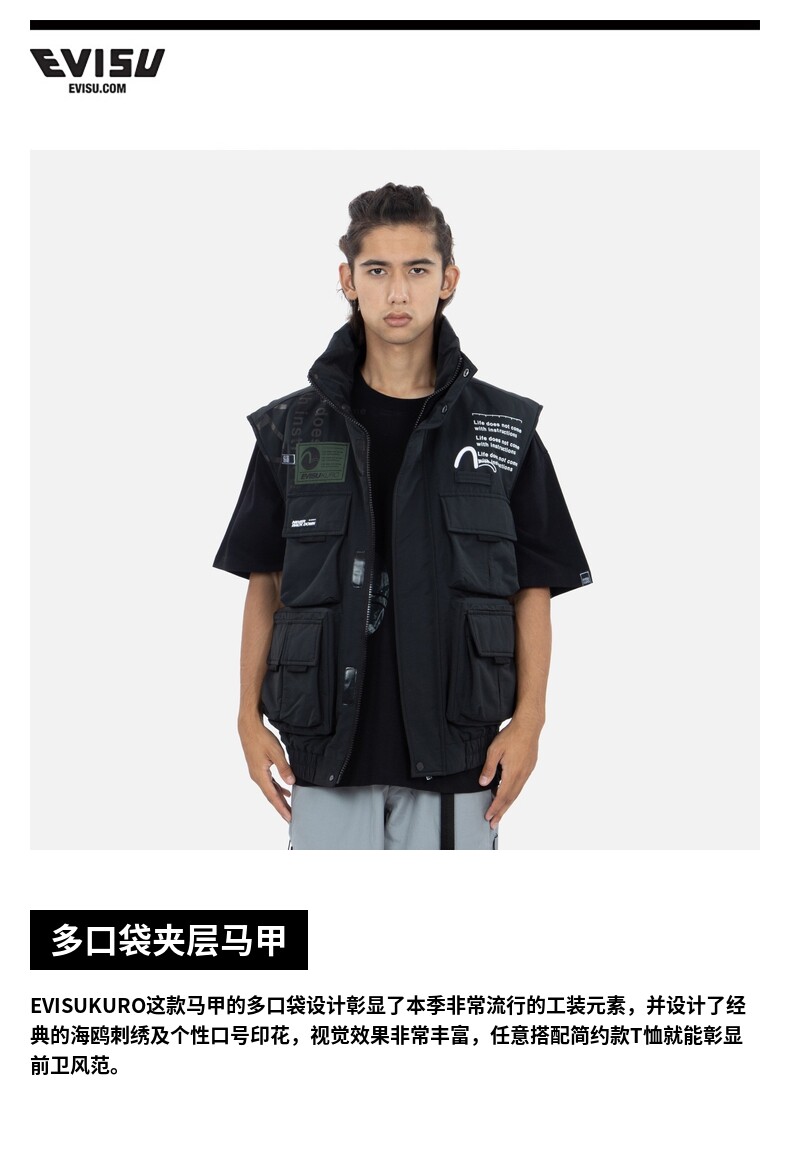EVISU осенне-зимний мужской ламинированный жилет с несколькими карманами 2EAGNM2VS732OSPQ