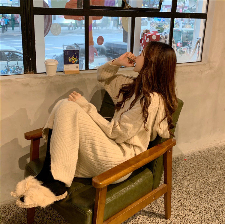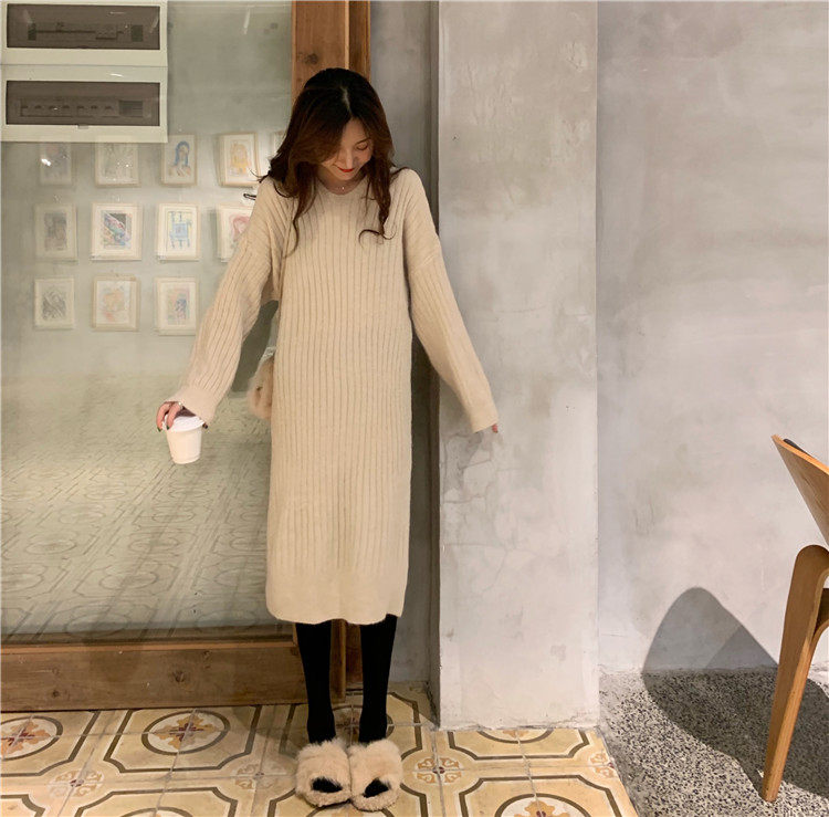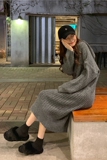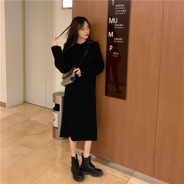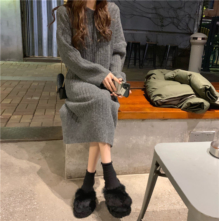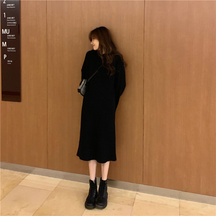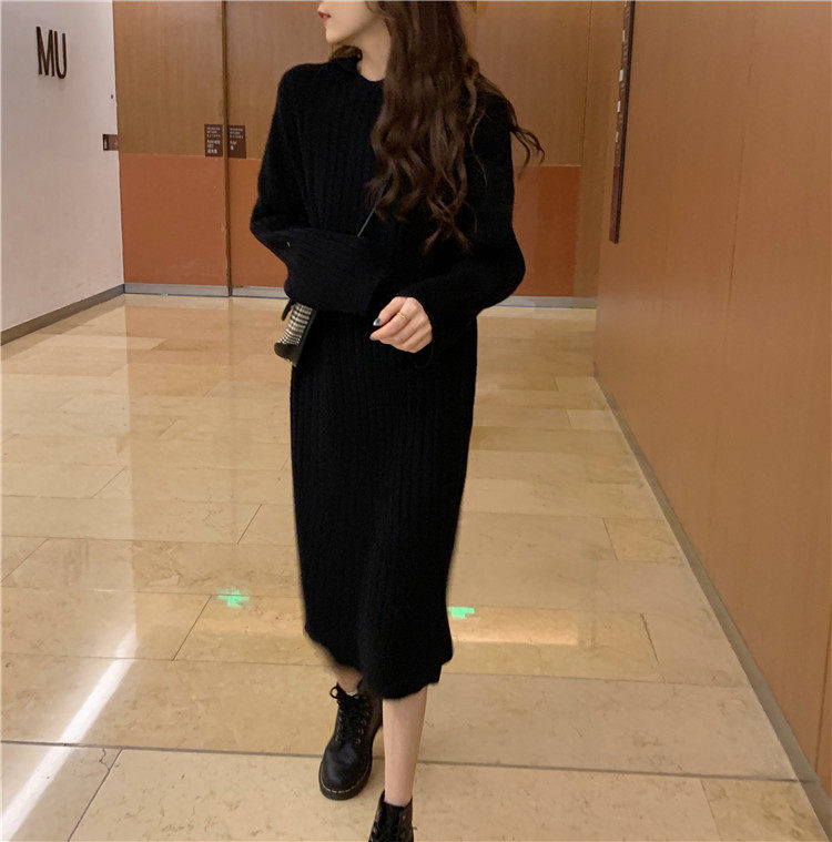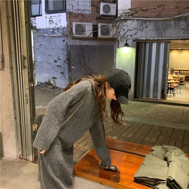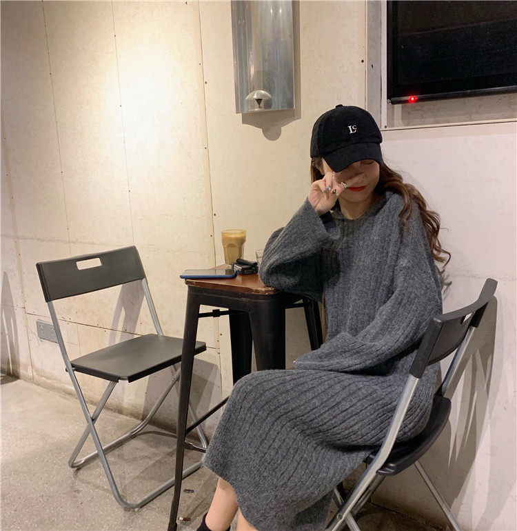 Длинное демисезонное шерстяное платье, трикотажная толстовка с капюшоном, средней длины, увеличенная толщина