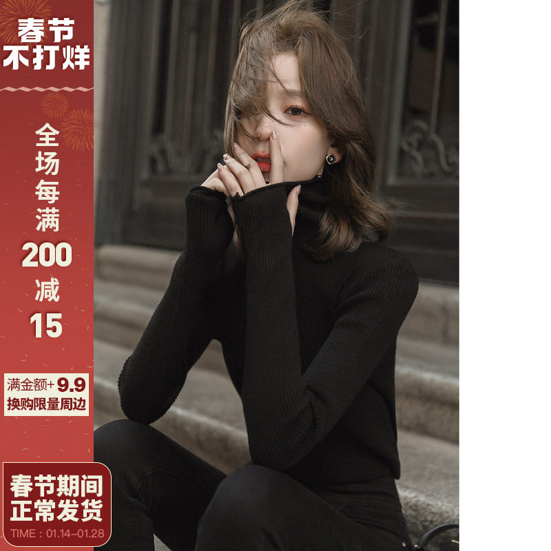 Базовый приятный телу демисезонный приталенный черный свитер, (в наличии на складе), высокий воротник