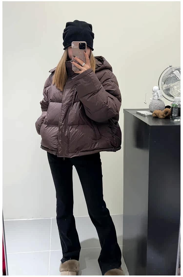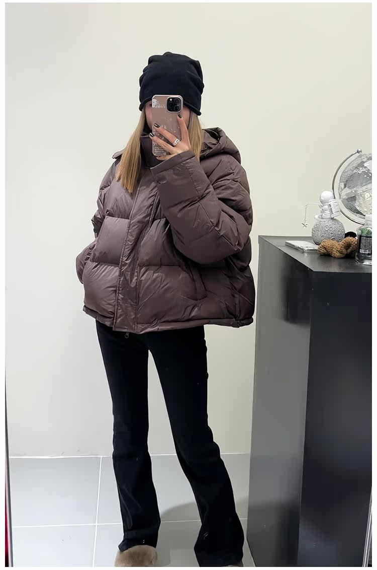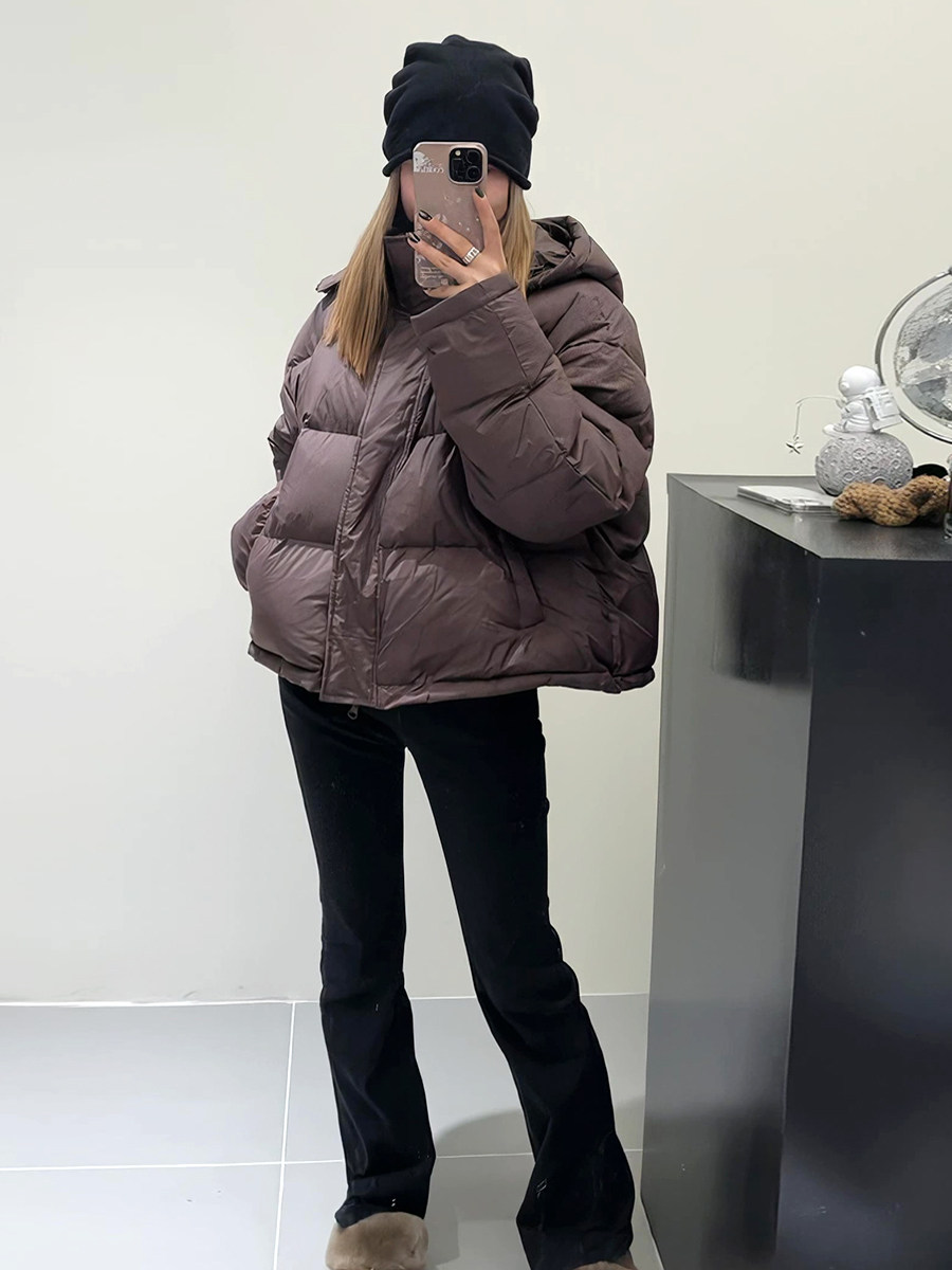 Зимний пуховик с капюшоном с пухом, небольшие дизайнерские джинсы с начесом, в корейском стиле, тренд сезона