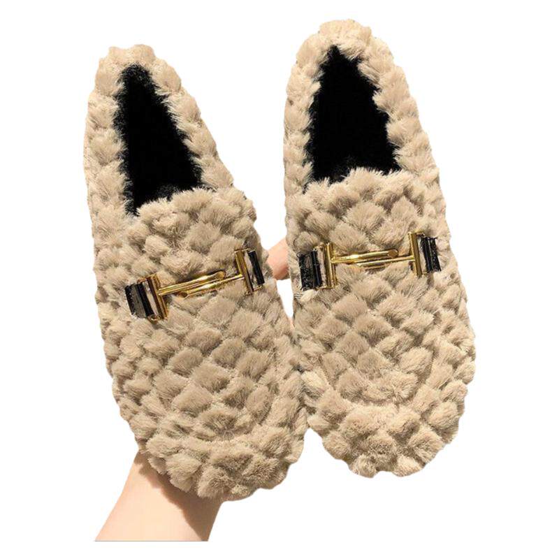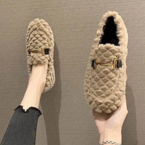 Женская меховая обувь для осенне-зимней верхней одежды. Новые бархатные хлопчатобумажные туфли 2022 года на плоской подошве, универсальные женские шапочки без шнуровки в корейском стиле.