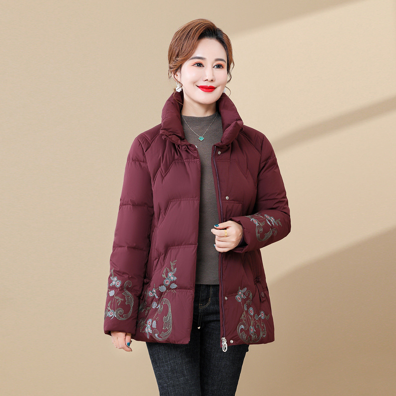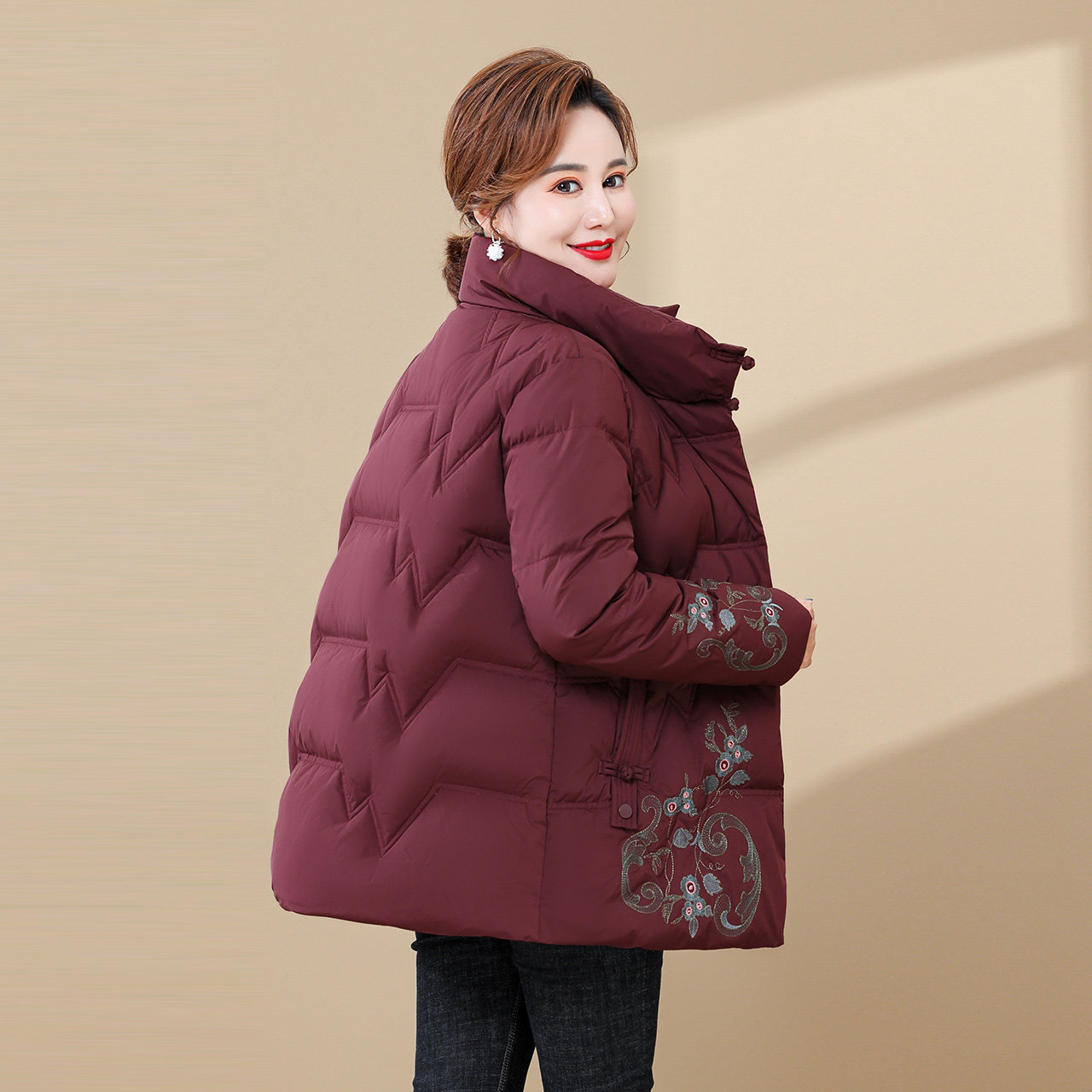 Демисезонная китайская вышивка для матери, пуховик, плащ, китайский стиль, с вышивкой, для среднего возраста, большой размер