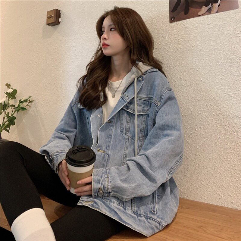 Tide, джинсовая куртка, лонгслив с капюшоном, коллекция 2023, большой размер, оверсайз