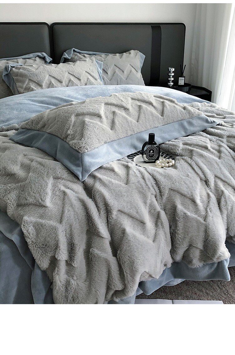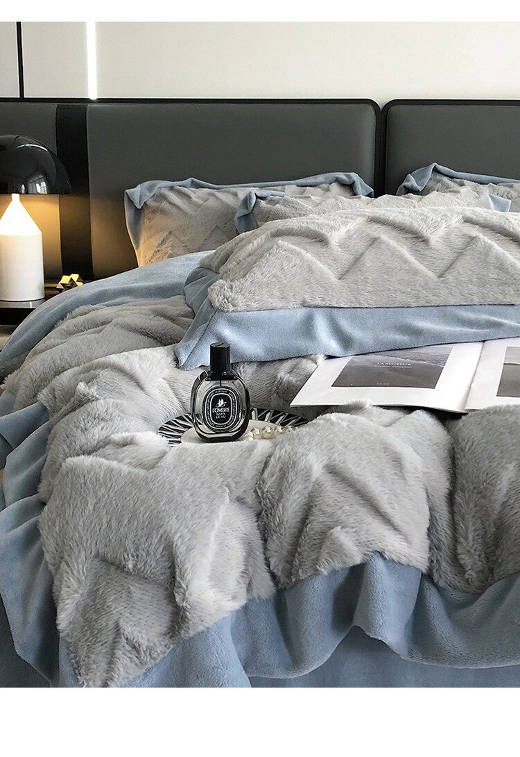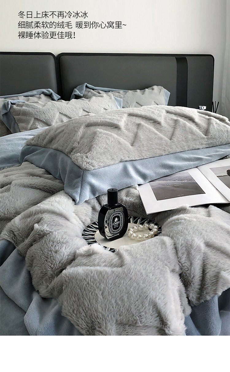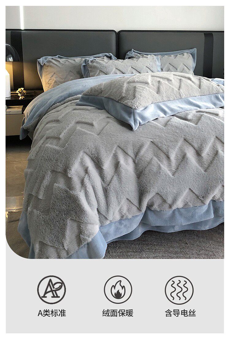 Зимний комплект, флисовый утепленный пододеяльник, коралловая фланелевая простыня, 4 предмета