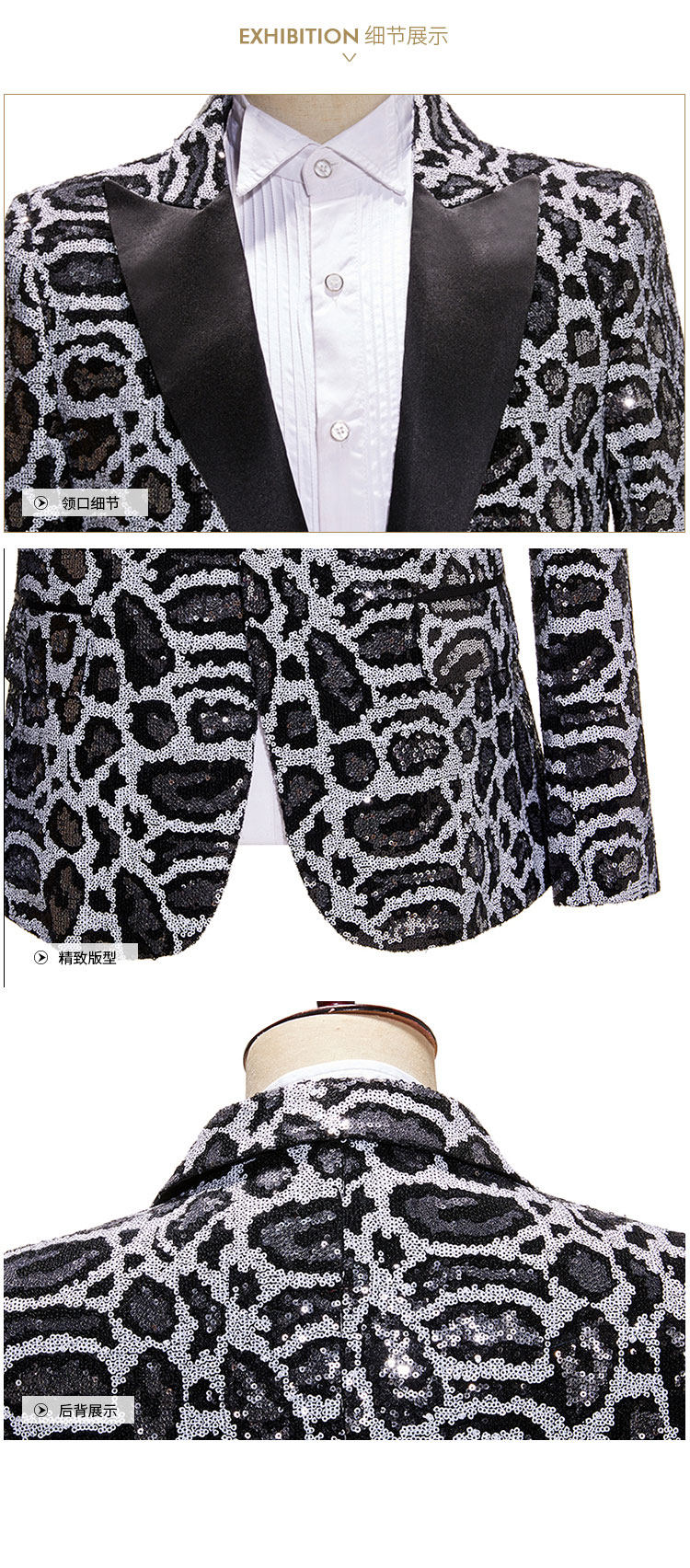 Мужское платье леопард Черно -белый