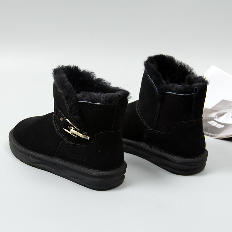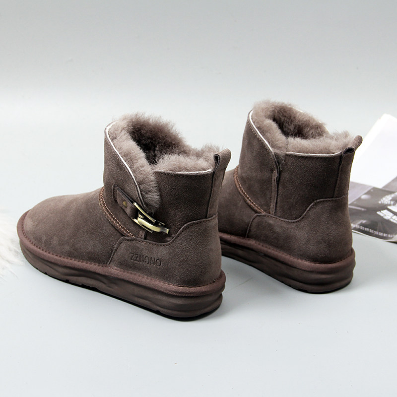 Кожаные флисовые зимние нескользящие утепленные короткие сапоги, коллекция 2022