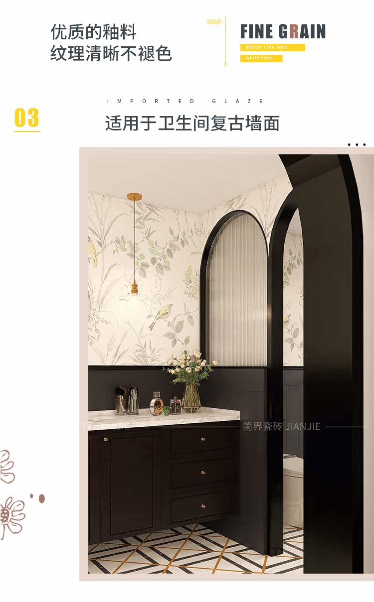 Ретро черно -белая плитка для ванной комнаты французская желтая 鹂 микрометровая плитка из дерева