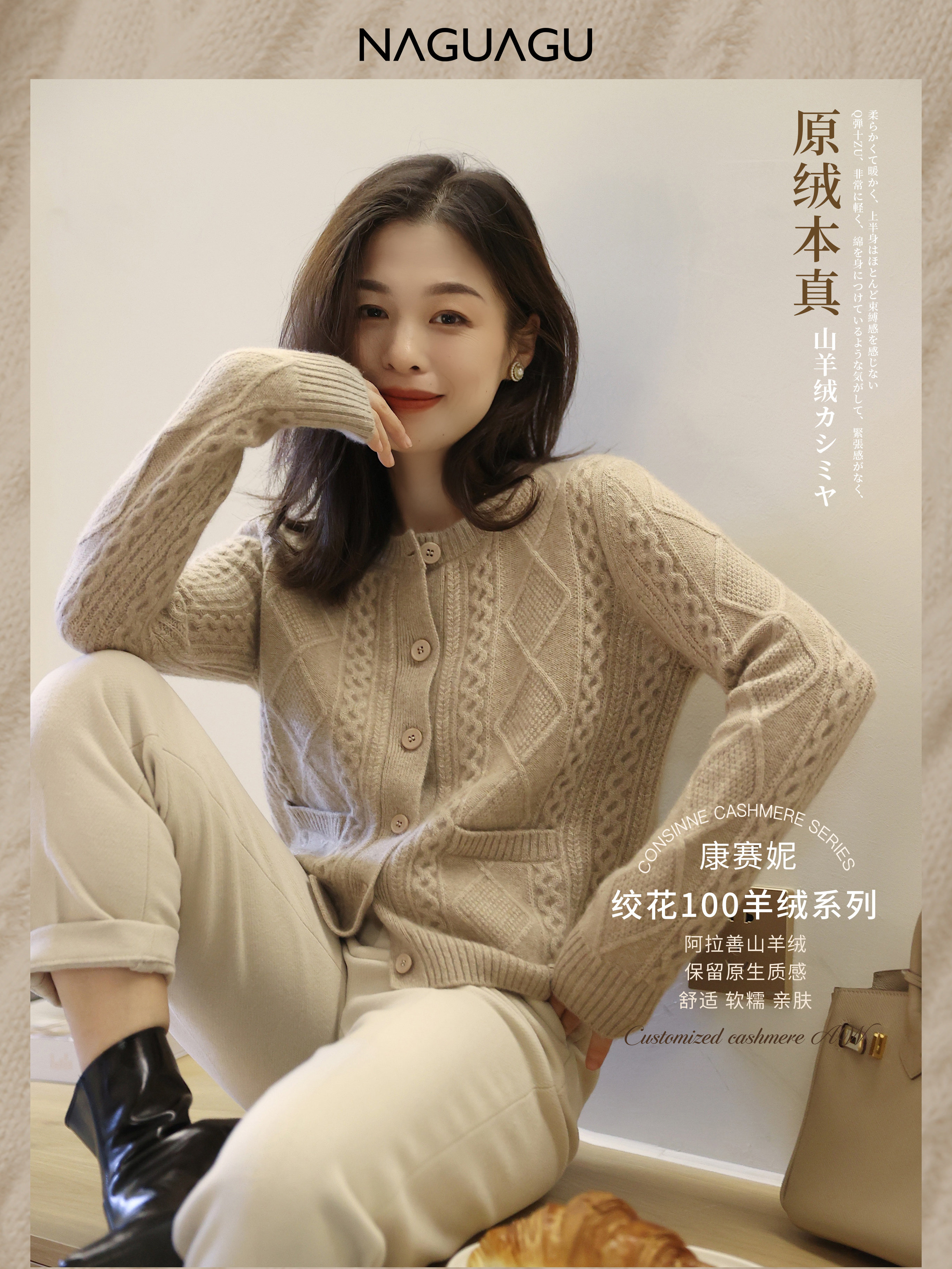 [面料:100山羊绒] [选用帼内鼎笈羊绒纱线品牌] | |
