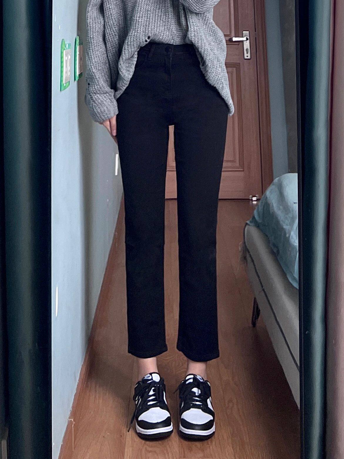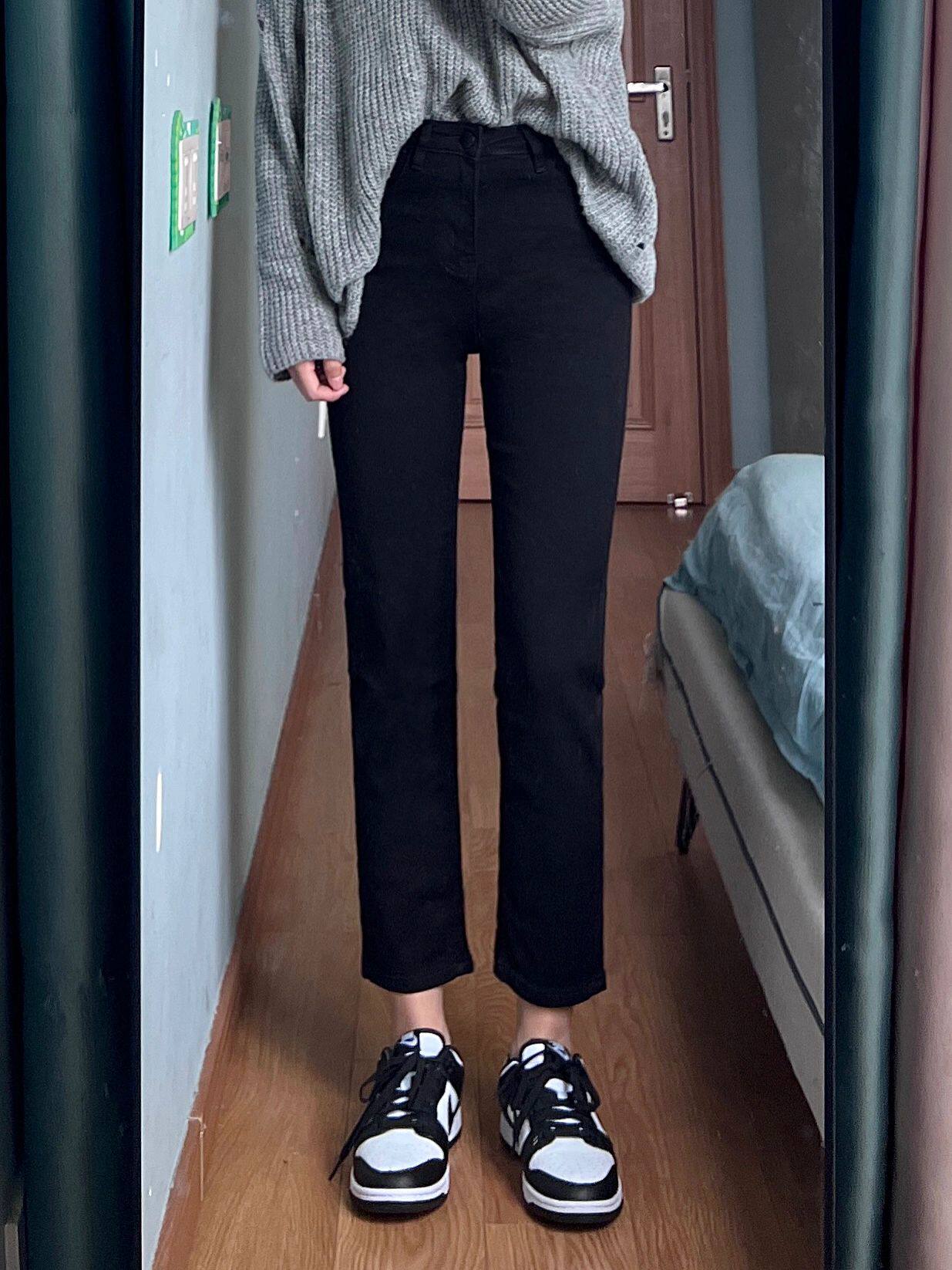Весенние прямые свободные джинсы, черные штаны, 2023, тренд сезона, свободный прямой крой, большой размер, высокая талия