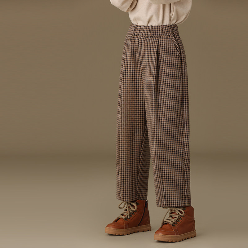 Зимние ретро удерживающие тепло штаны подходит для мужчин и женщин, детская одежда, семейный стиль, свободный прямой крой