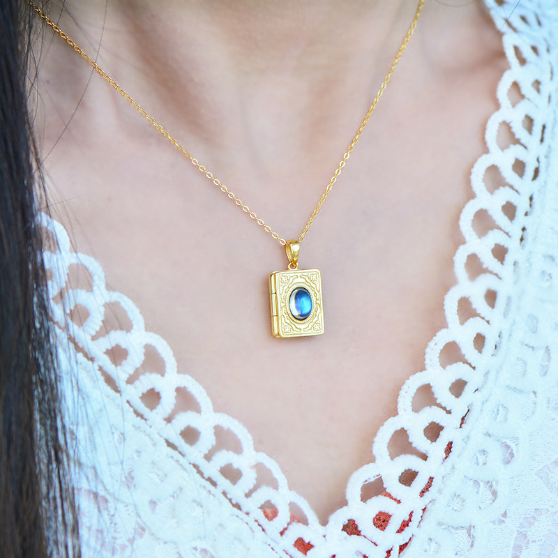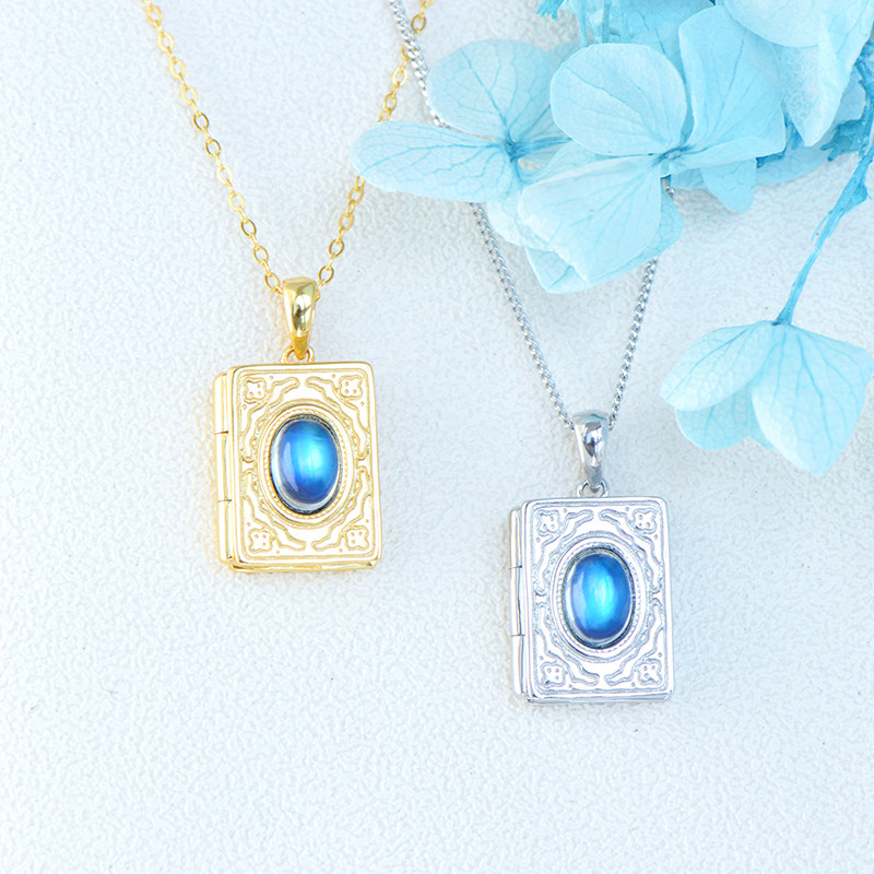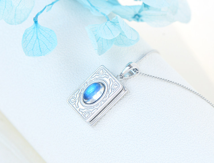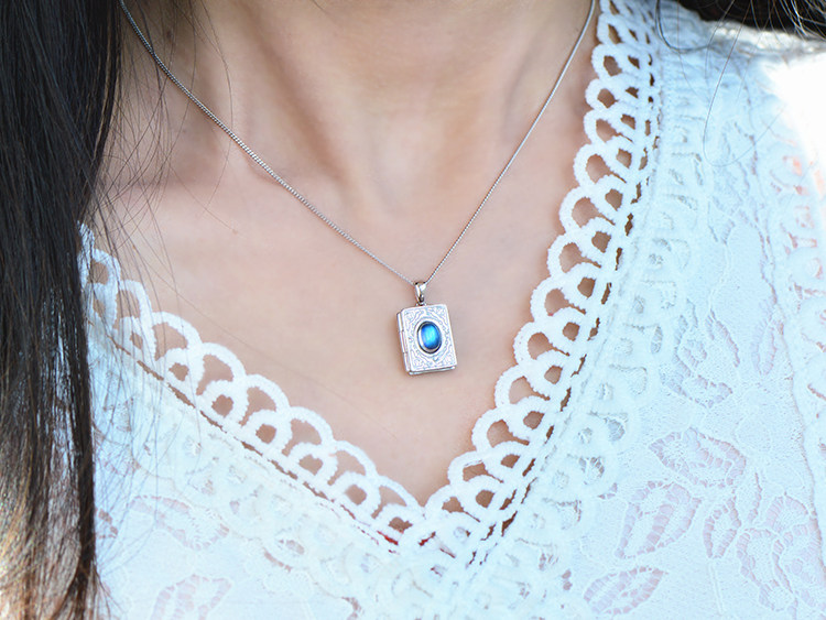 Подвеска, цепочка до ключиц, фоторамка, фотография, ожерелье, лунный камень, серебро 925 пробы, для влюбленных