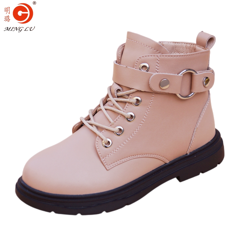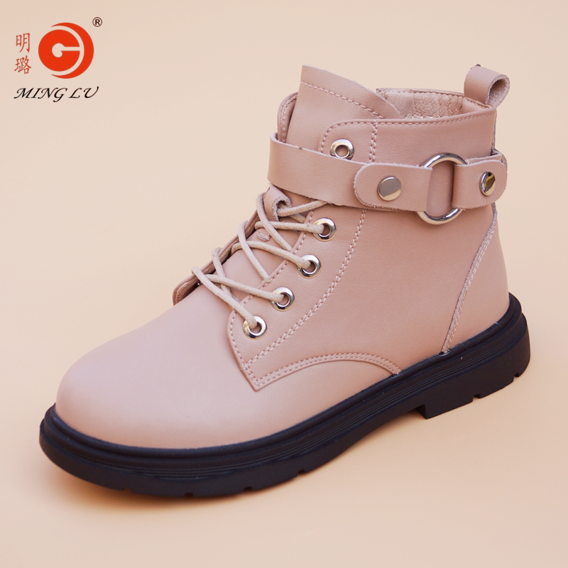 明璐 Martens, детские утепленные нескользящие короткие сапоги, полусапоги, в корейском стиле, из натуральной кожи, подходит для подростков