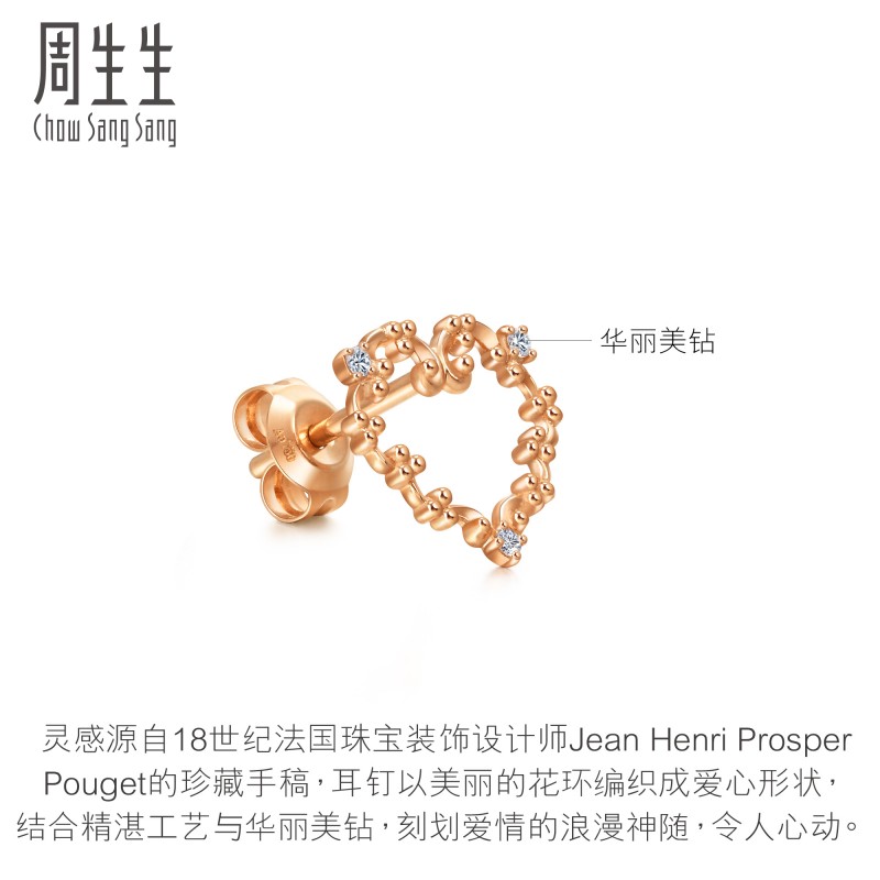周生生 V & A Love Цветочное кольцо сердца в форме сердца уши только 93522E