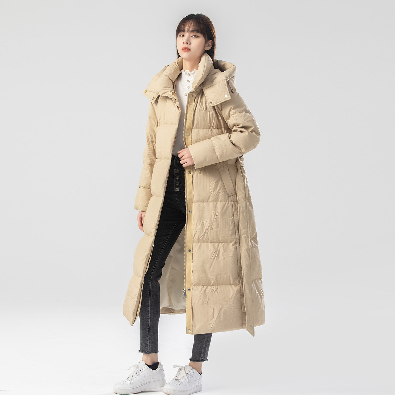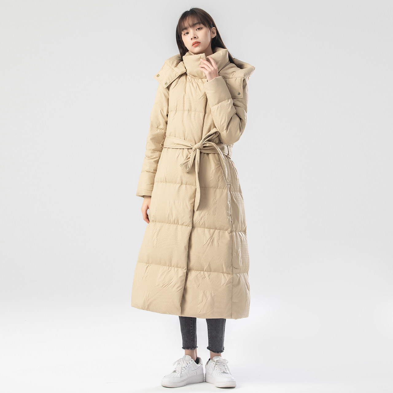 Демисезонный длинный ремень, приталенный корсет, пуховик, длина макси