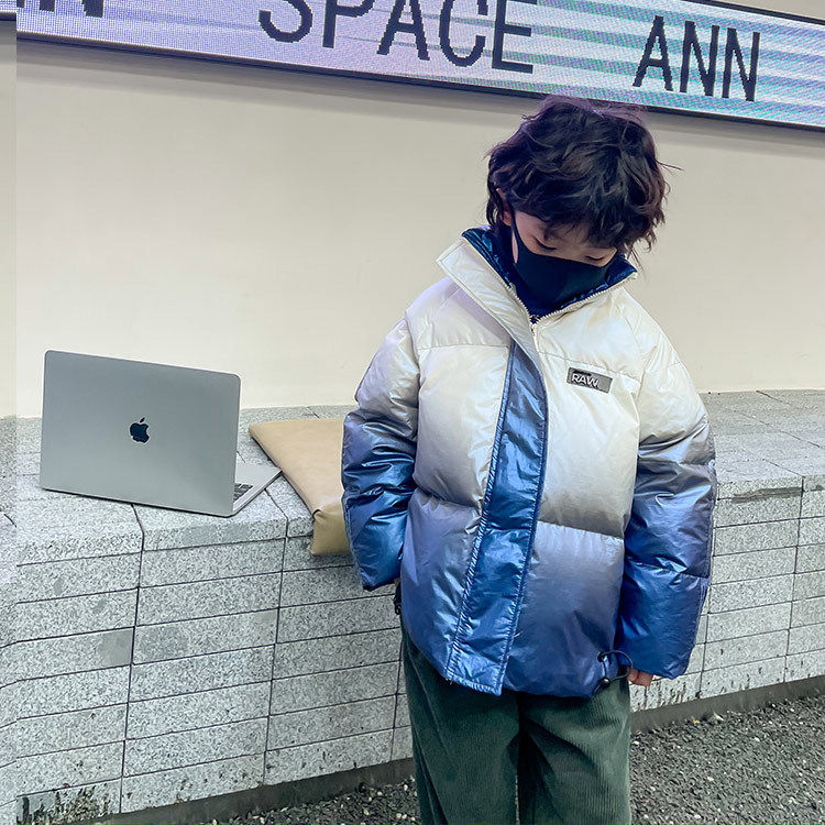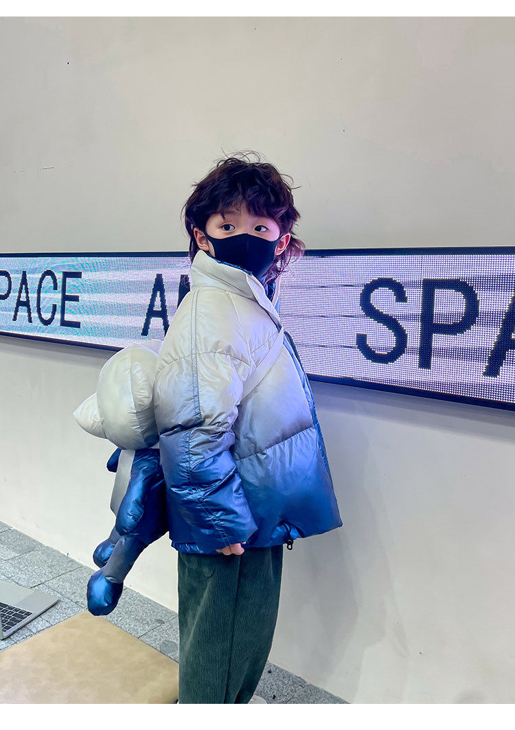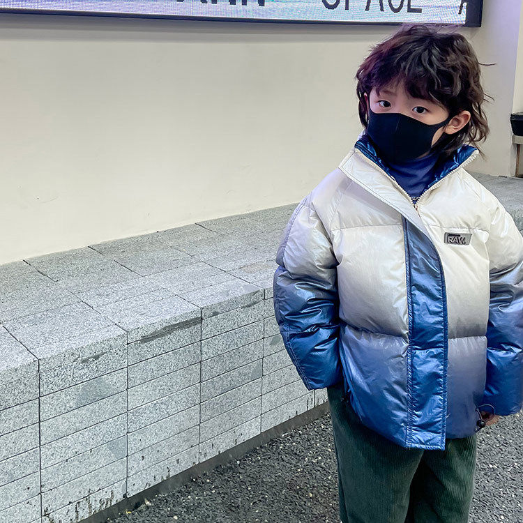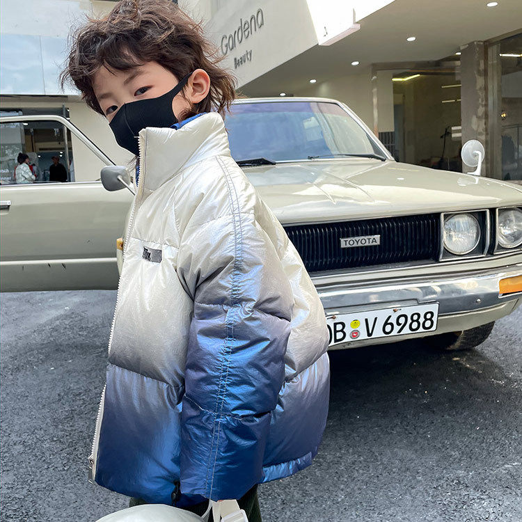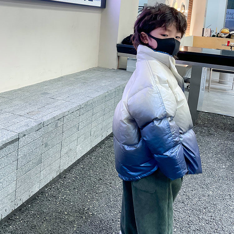 Глянцевый зимний пуховик для мальчиков, бархатная детская утепленная куртка, 2022, в корейском стиле, в западном стиле, градиент, утиный пух