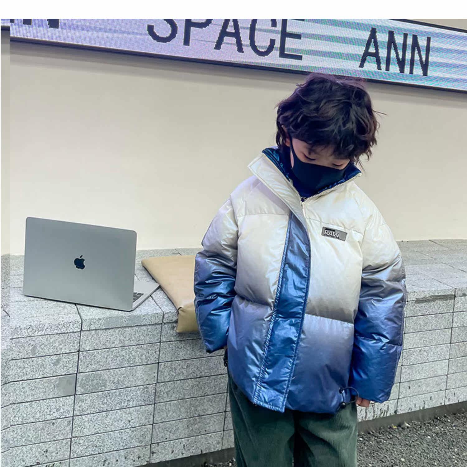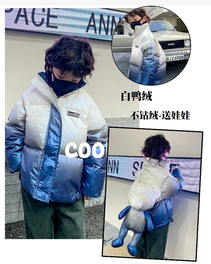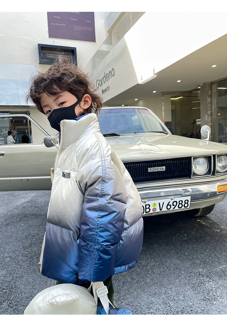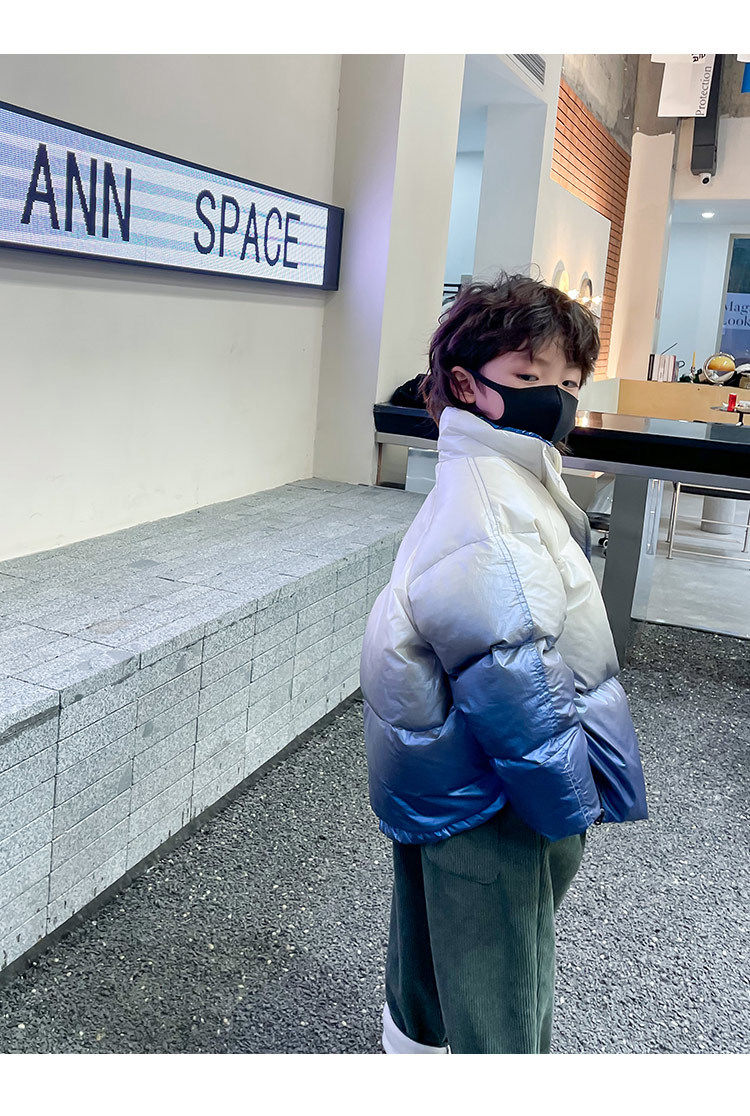 Глянцевый зимний пуховик для мальчиков, бархатная детская утепленная куртка, 2022, в корейском стиле, в западном стиле, градиент, утиный пух