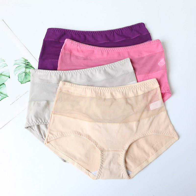 Мягкие дышащие хлопковые кружевные комфортные сексуальные трусы, высокая талия