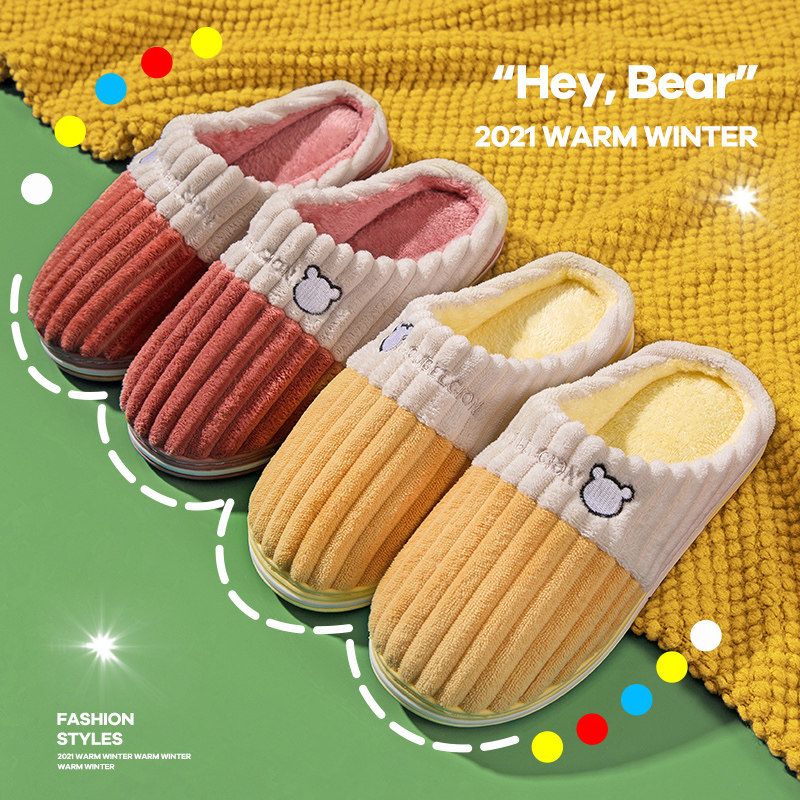Демисезонные тапочки, удерживающая тепло нескользящая мультяшная зимняя обувь на платформе для влюбленных