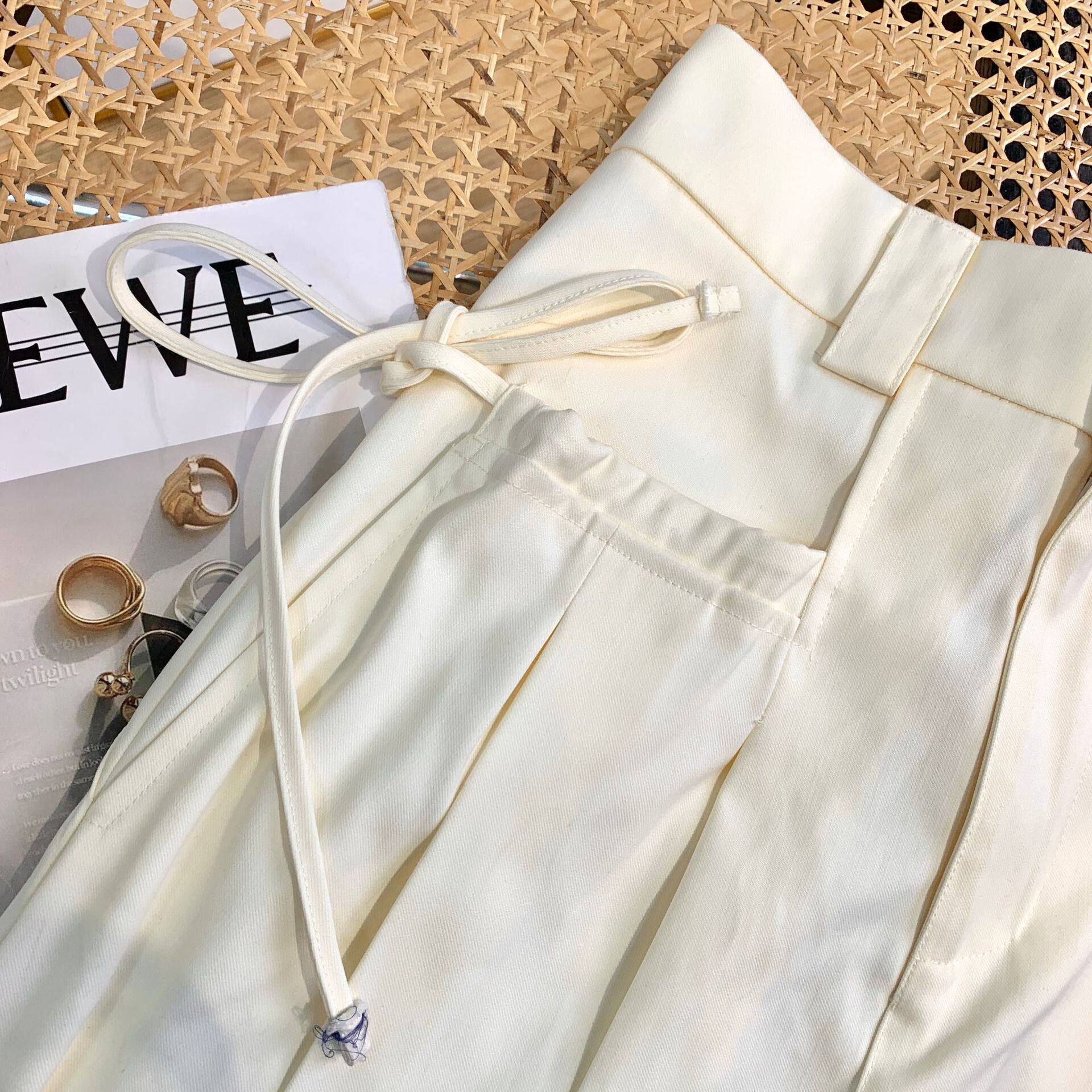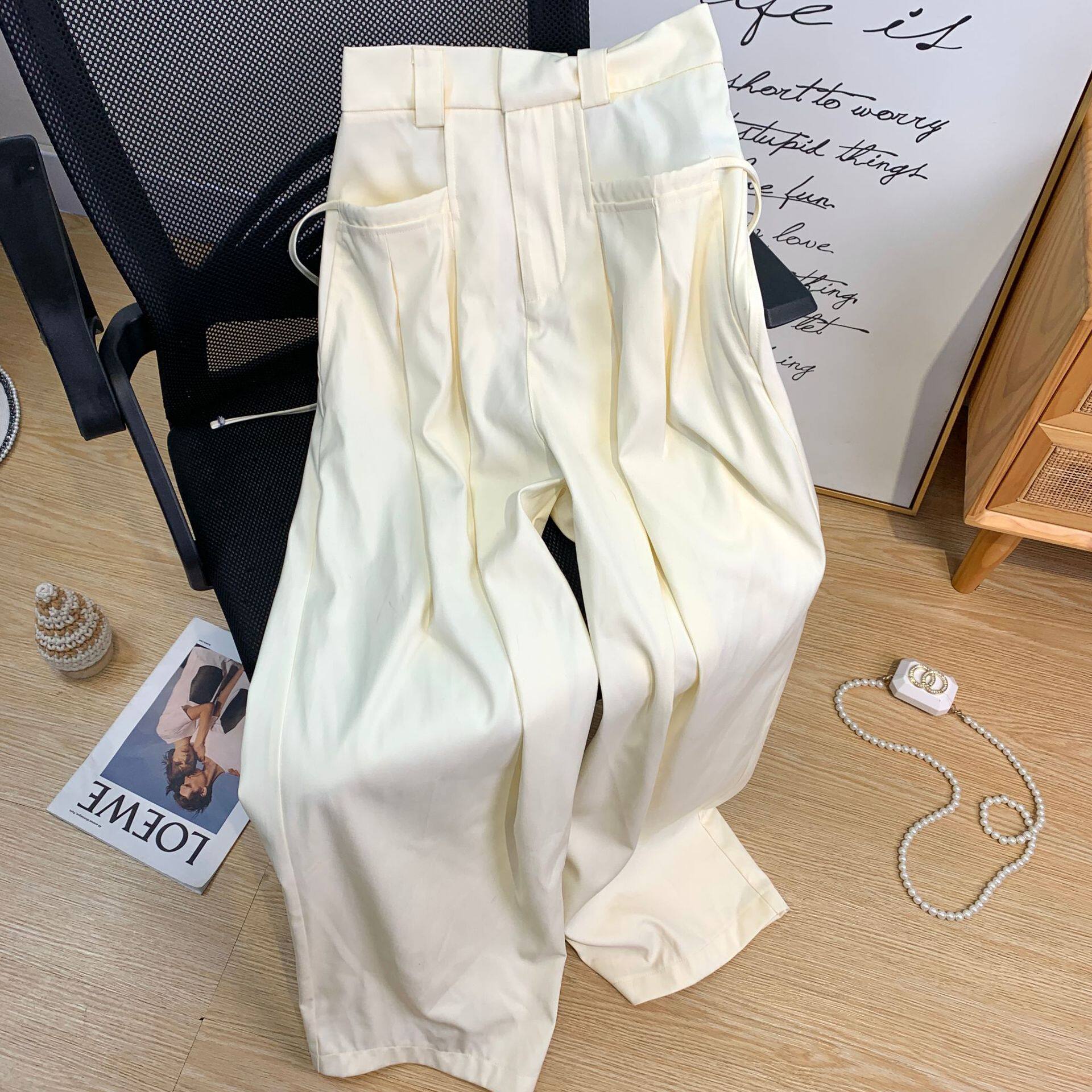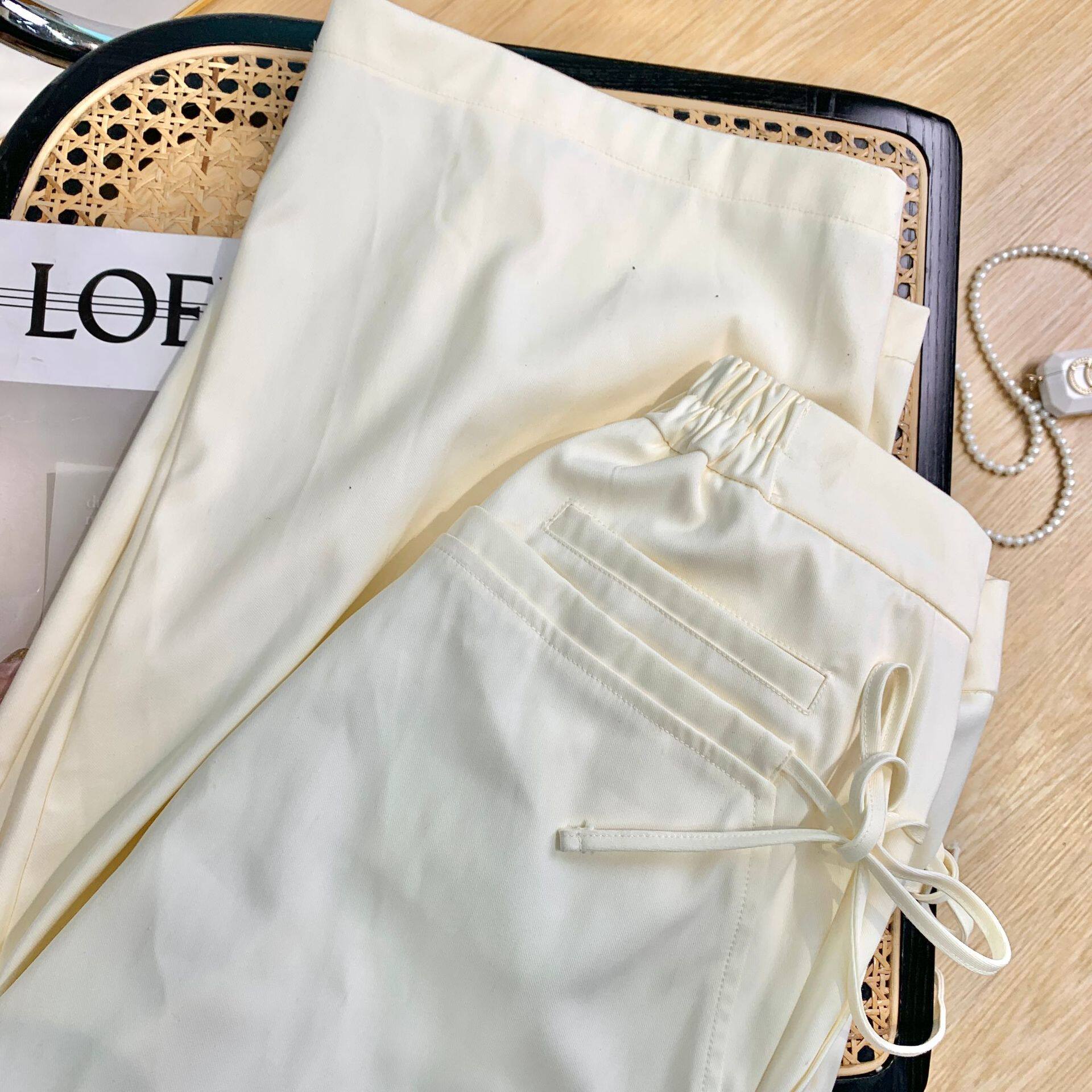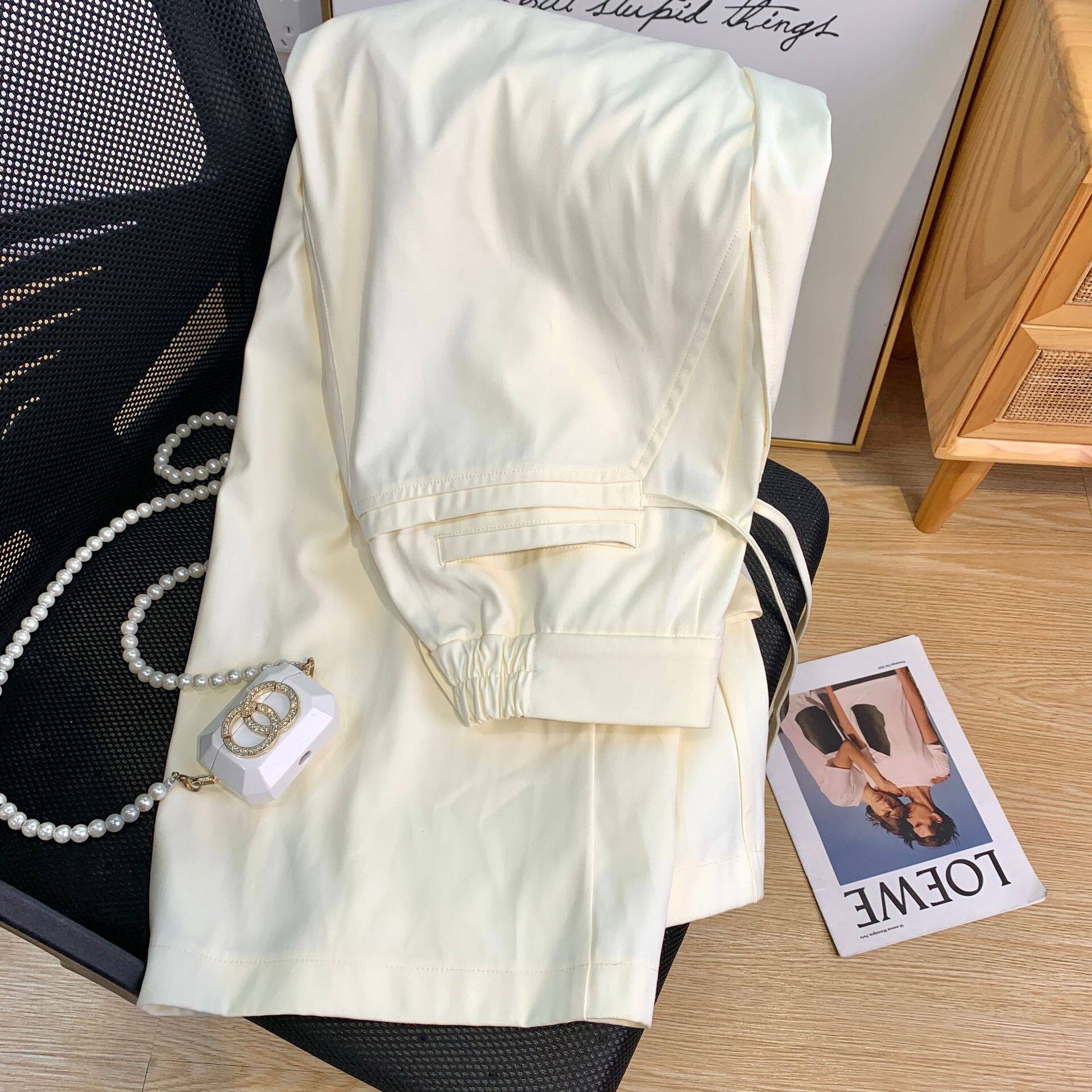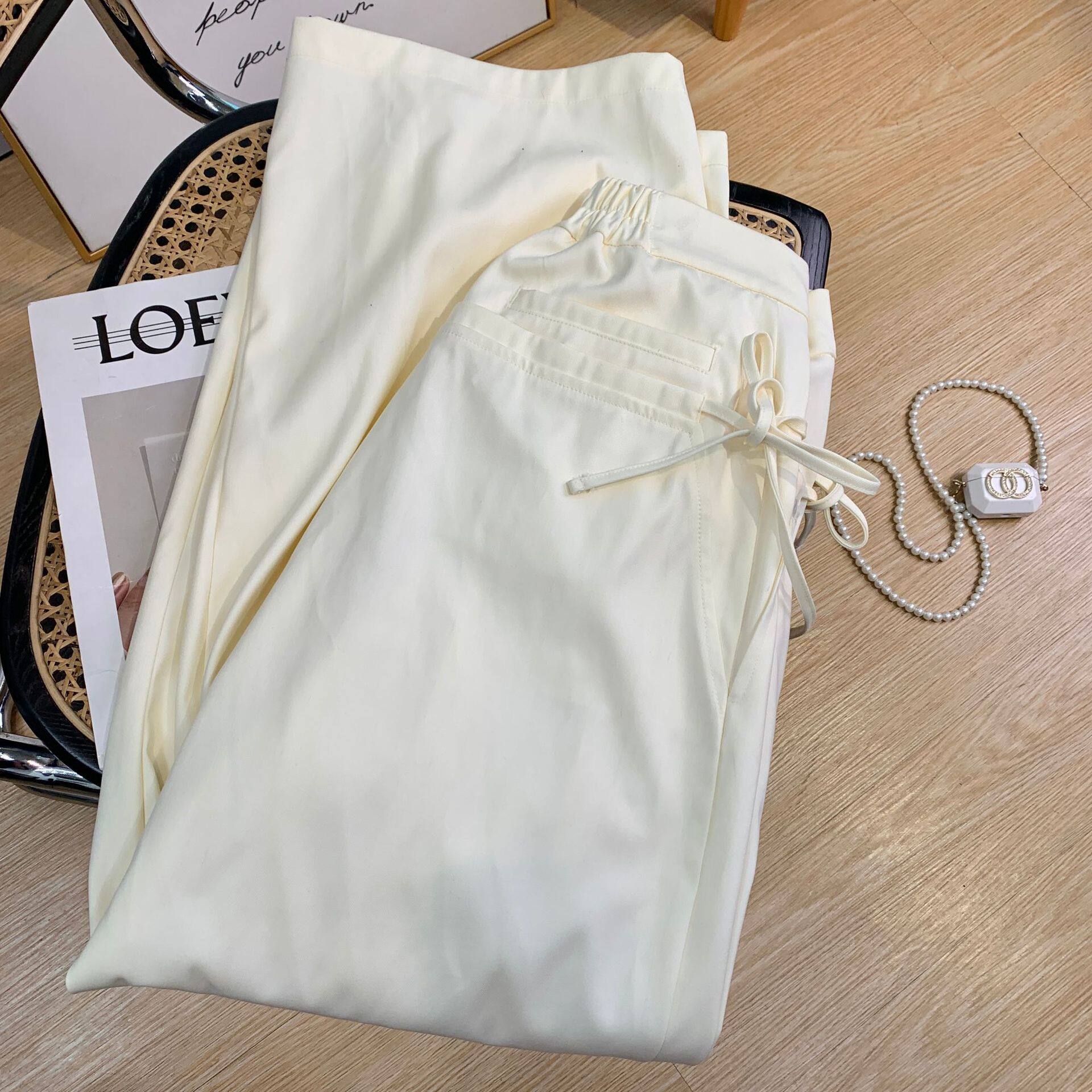 Однотонные белые штаны, пиджак классического кроя, коллекция 2022, свободный крой, высокая талия