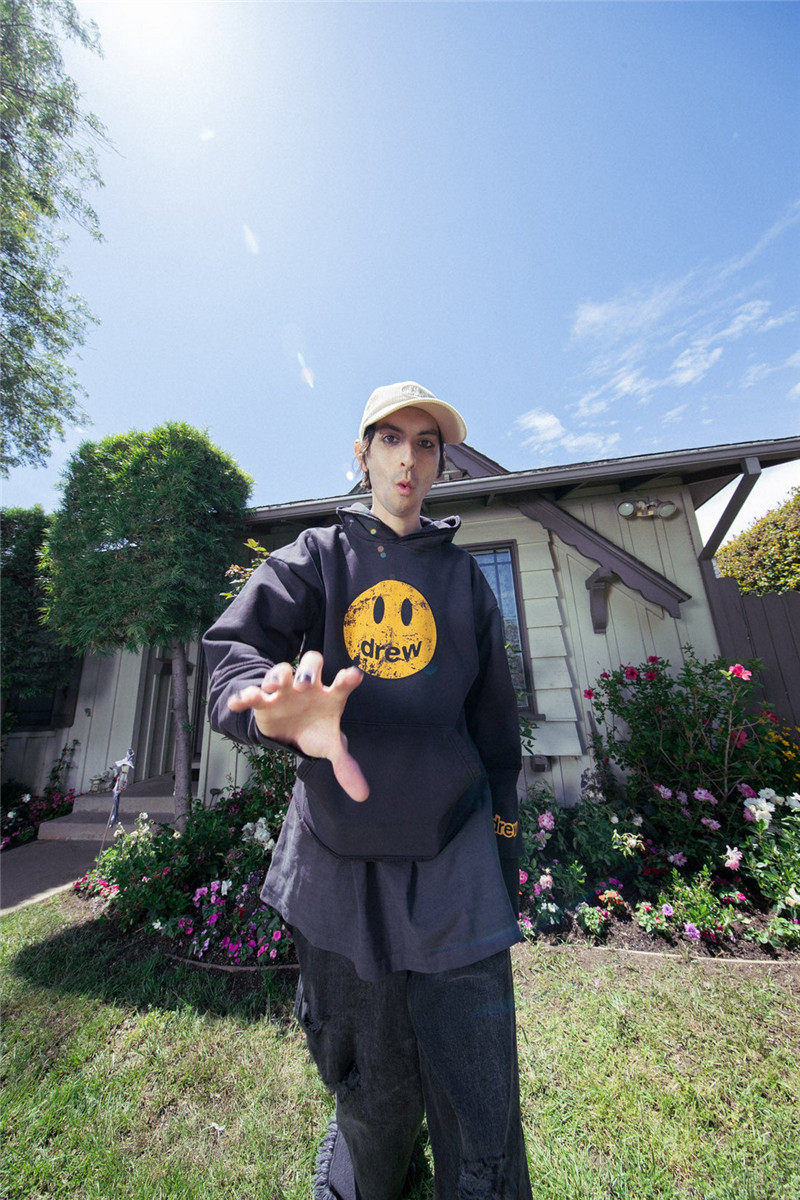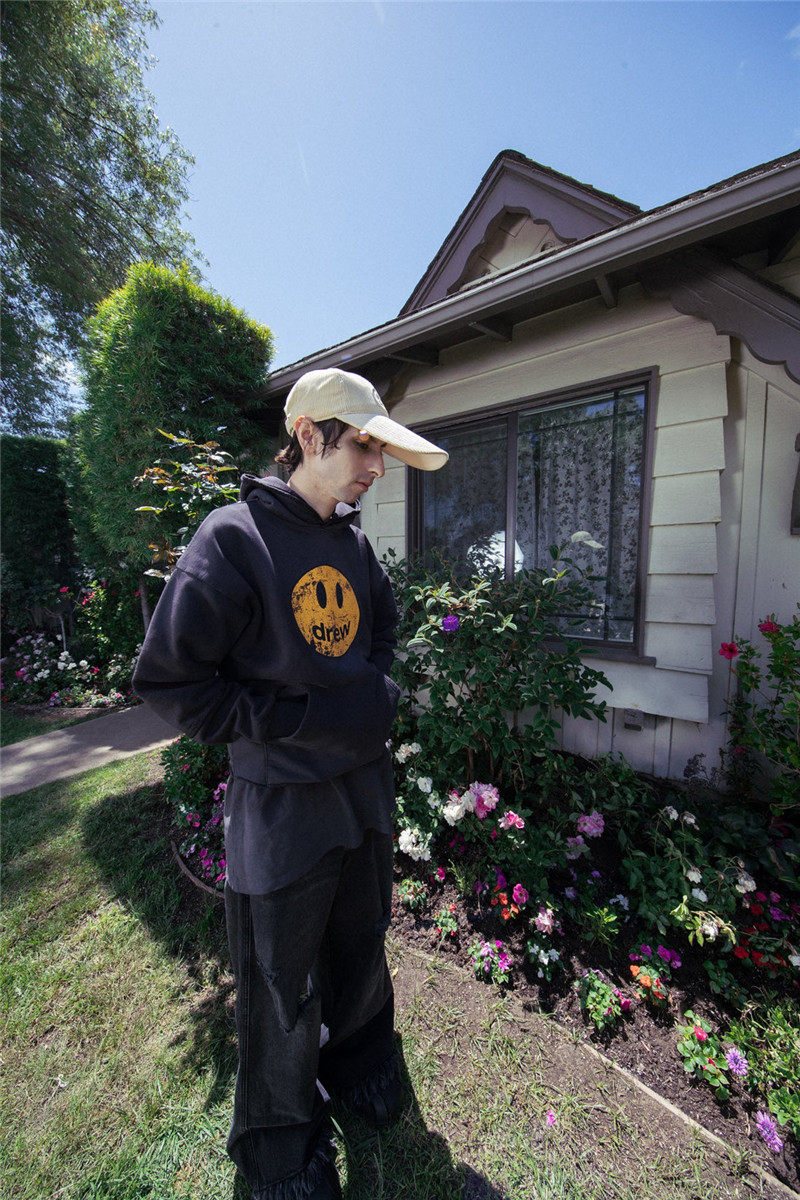 Делание старой разрушенной печатной улыбки на лицевая шляпа рубашки Американский Джастинбибер Чистый хлопковый круг черный пуловер свитер