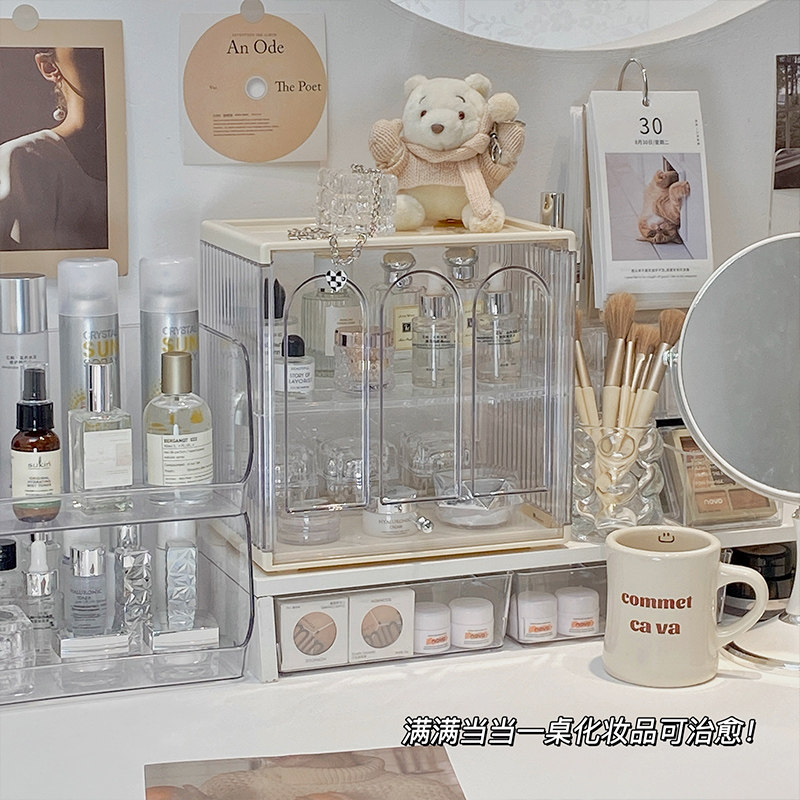 Легкая роскошная косметическая коробка для хранения домохозяйственной коробки с большой капочностью пылепроницаемой девочки Студент общежитие на рабочем столе уход за кожей