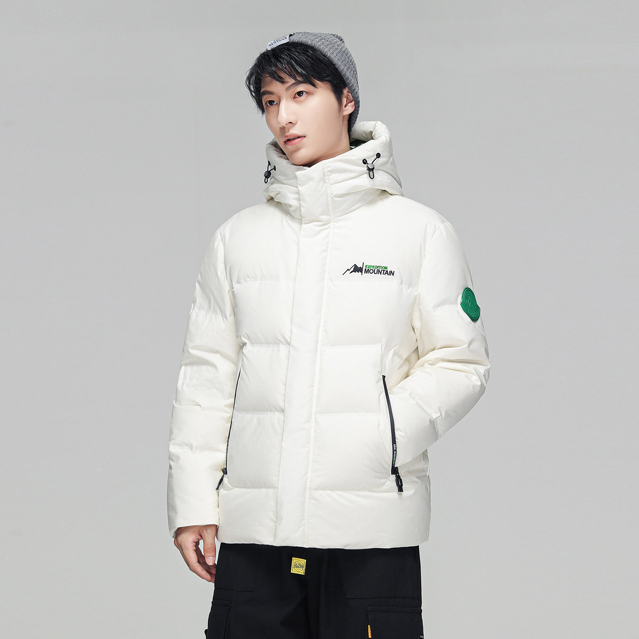 Демисезонный короткий универсальный пуховик с капюшоном для отдыха