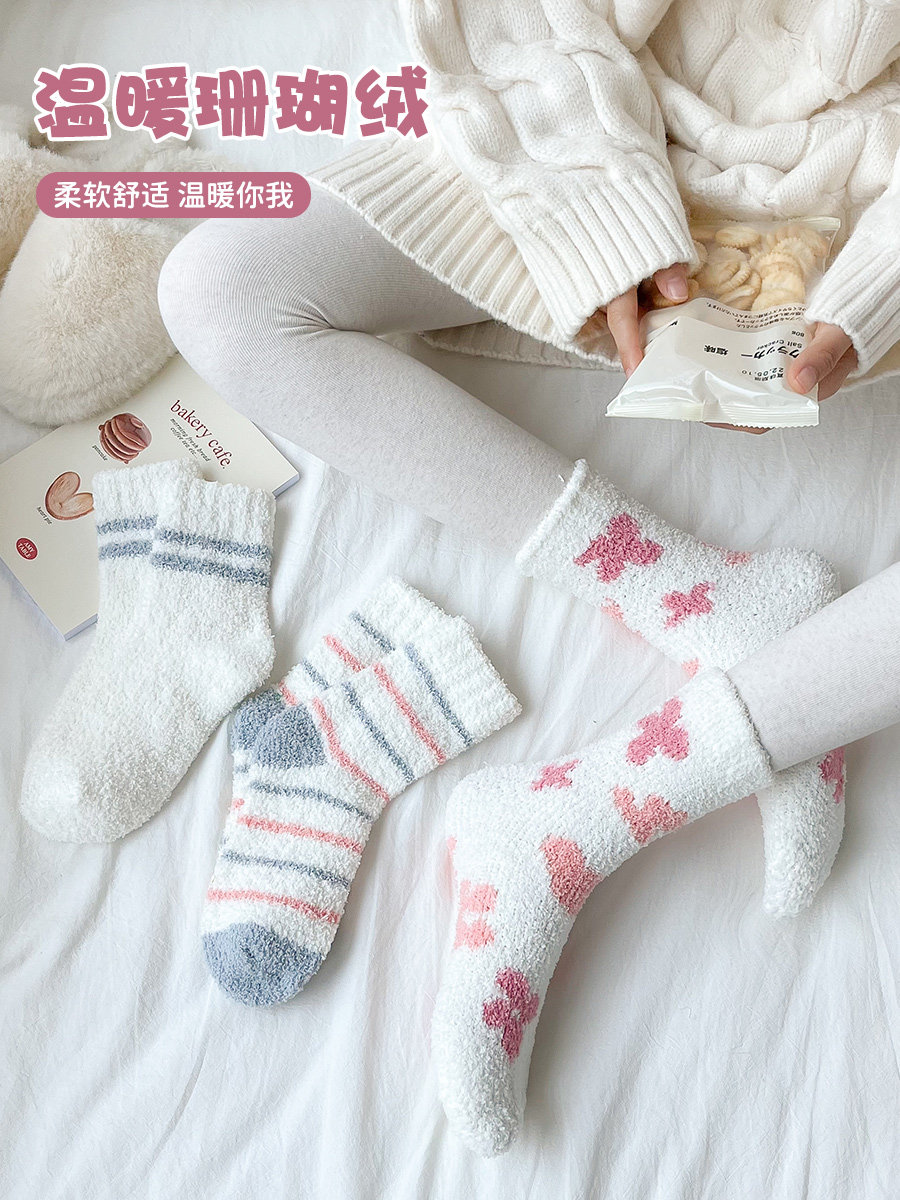 Коралловые бархатные демисезонные послеродовые удерживающие тепло утепленные милые носки для беременных