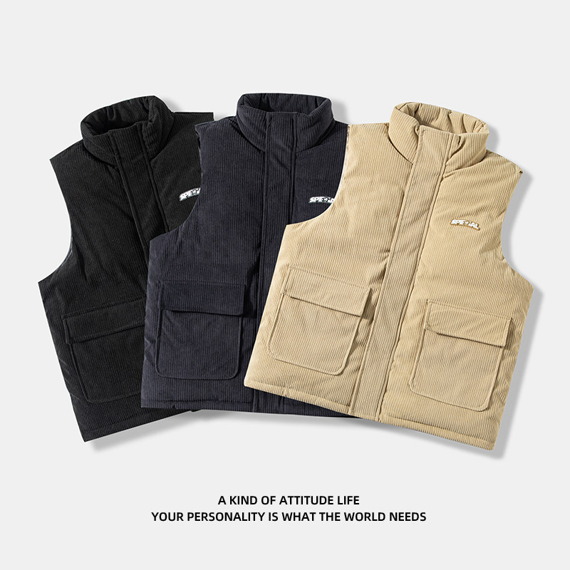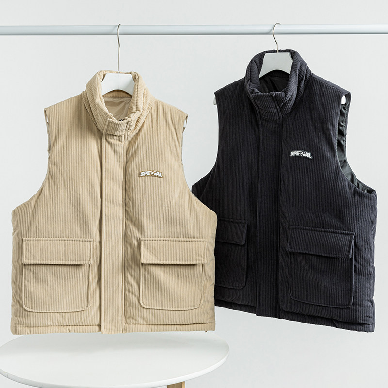 Японский ретро зимний вельветовый пуховик подходит для мужчин и женщин, жилет, куртка, городской стиль