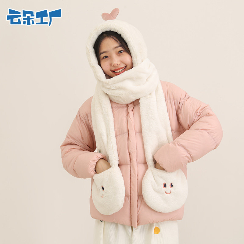 Бархатный шарф, демисезонные удерживающие тепло перчатки, шапка, милый комплект, 3 предмета