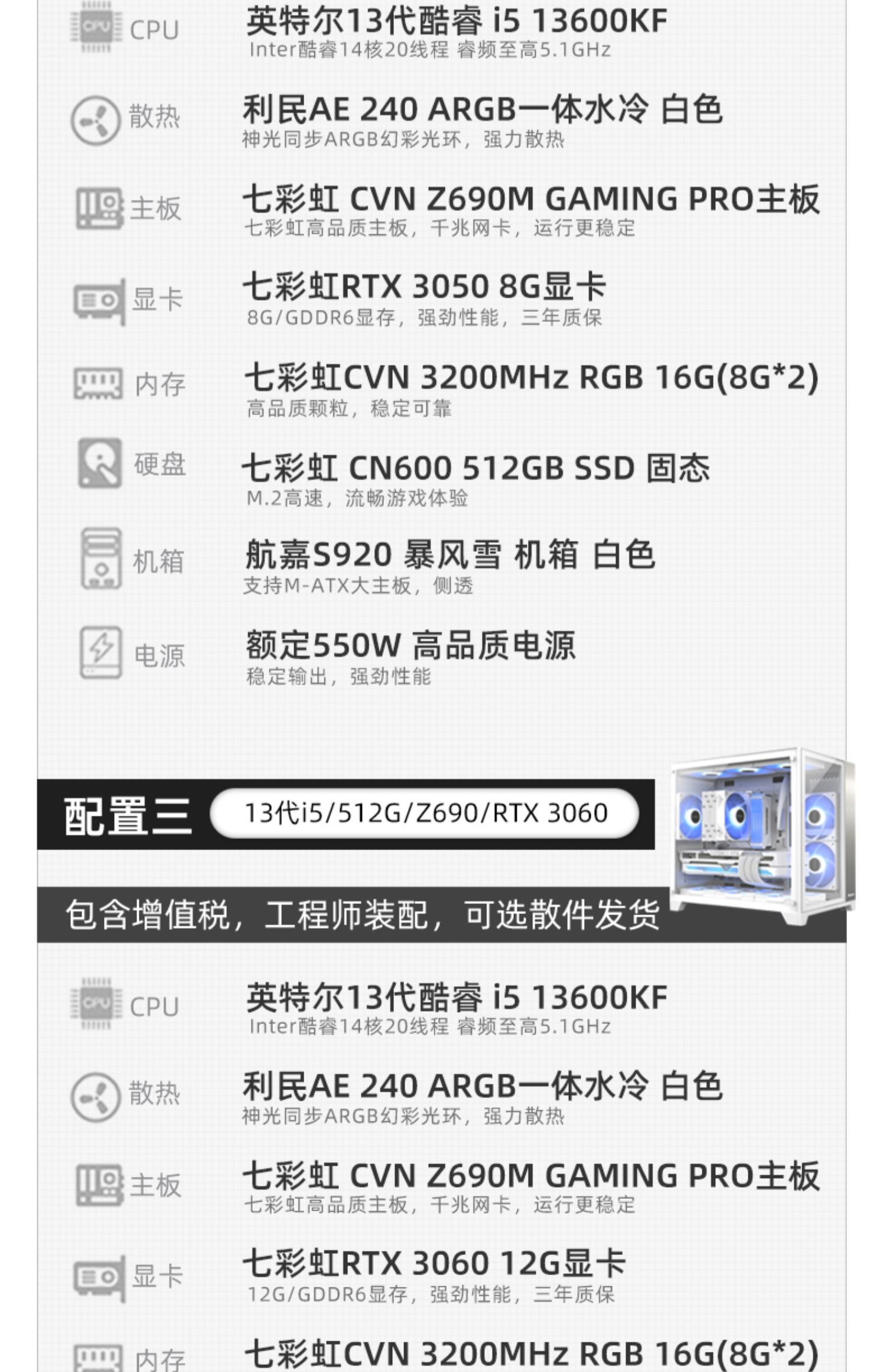 Семь радуга белого моря Взгляд Комната Хост компьютера I5 13600K RTX3060 4070SUPER 4060TI 8G Независимая Графическая карта AI Desktop Game Diy Complete Set Set Assembly Machine
