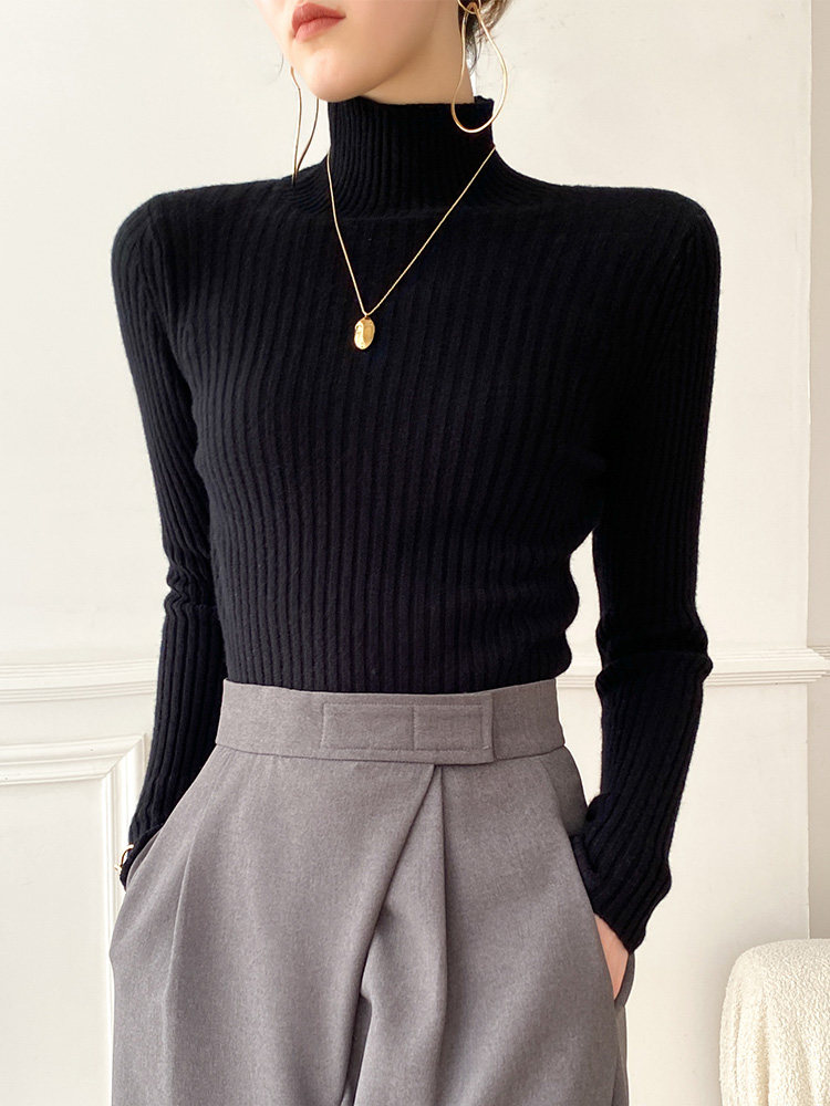 Демисезонный свитер, трикотажный базовый шерстяной лонгслив, в западном стиле, увеличенная толщина, в обтяжку