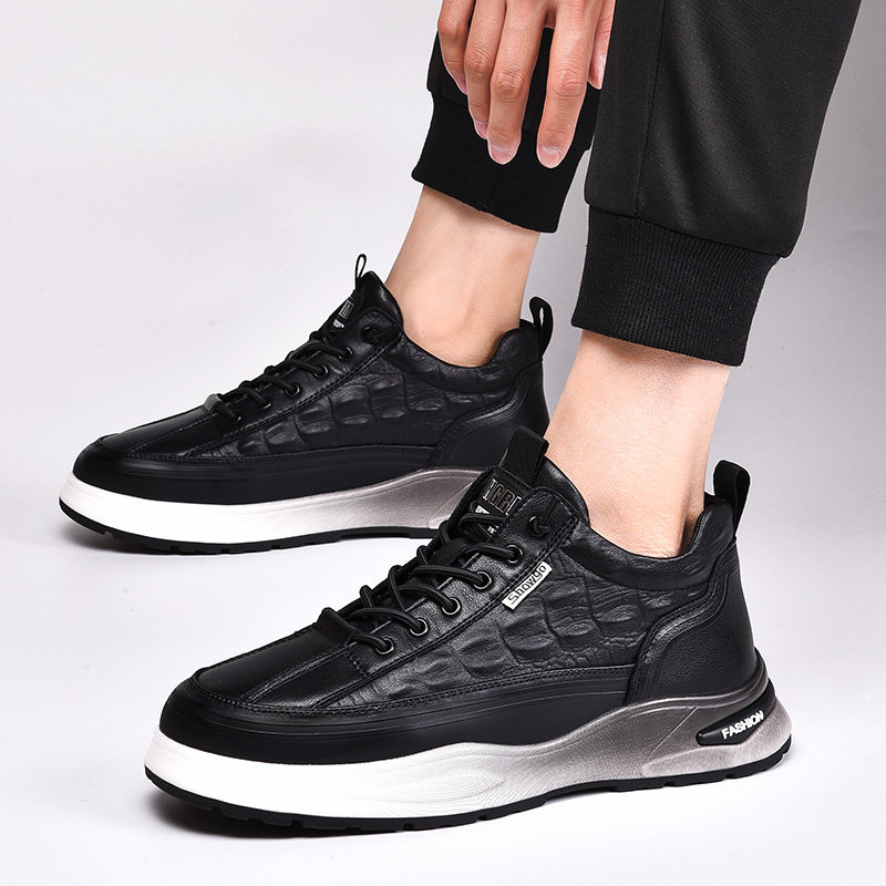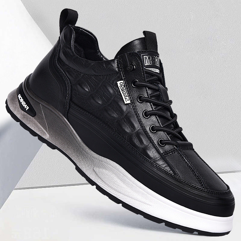 Мужская обувь, весна 2025, новые туфли на высоком каблуке из натуральной кожи, модные и универсальные мужские легкие повседневные спортивные туфли на мягкой подошве